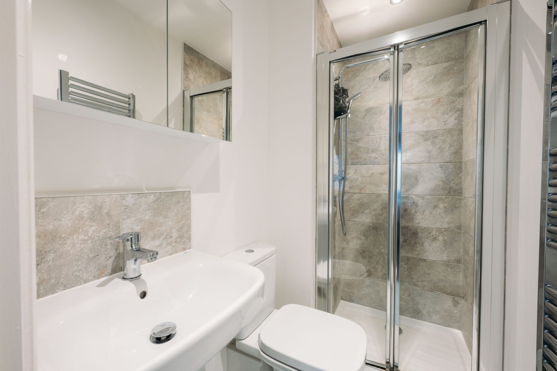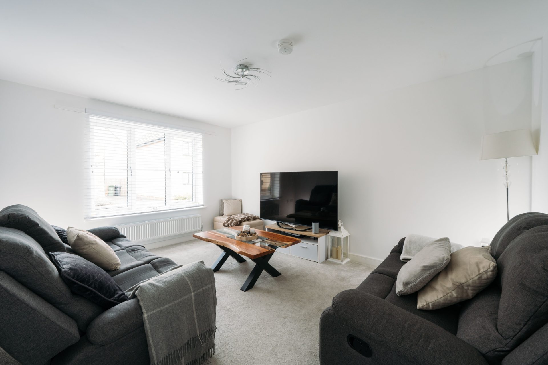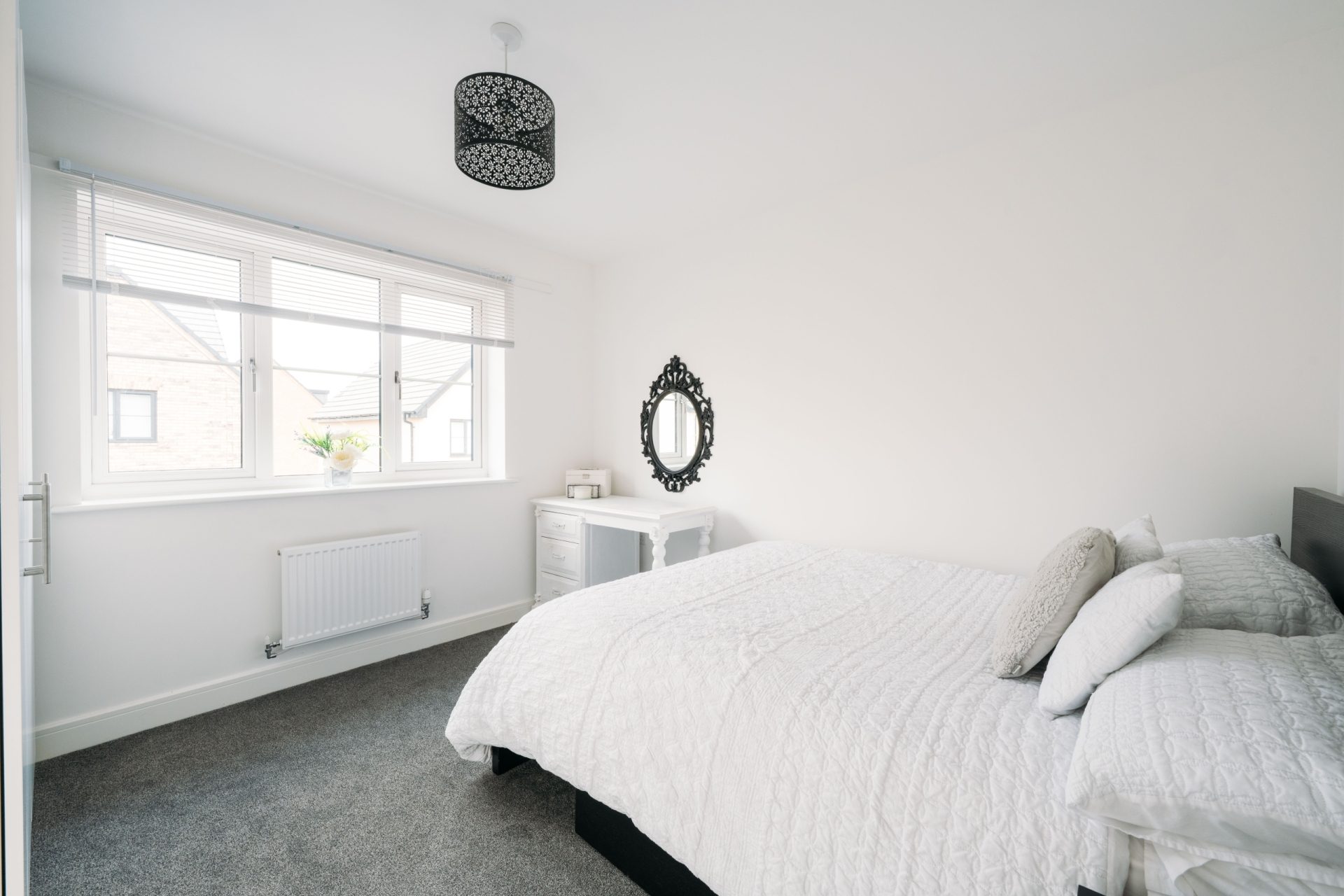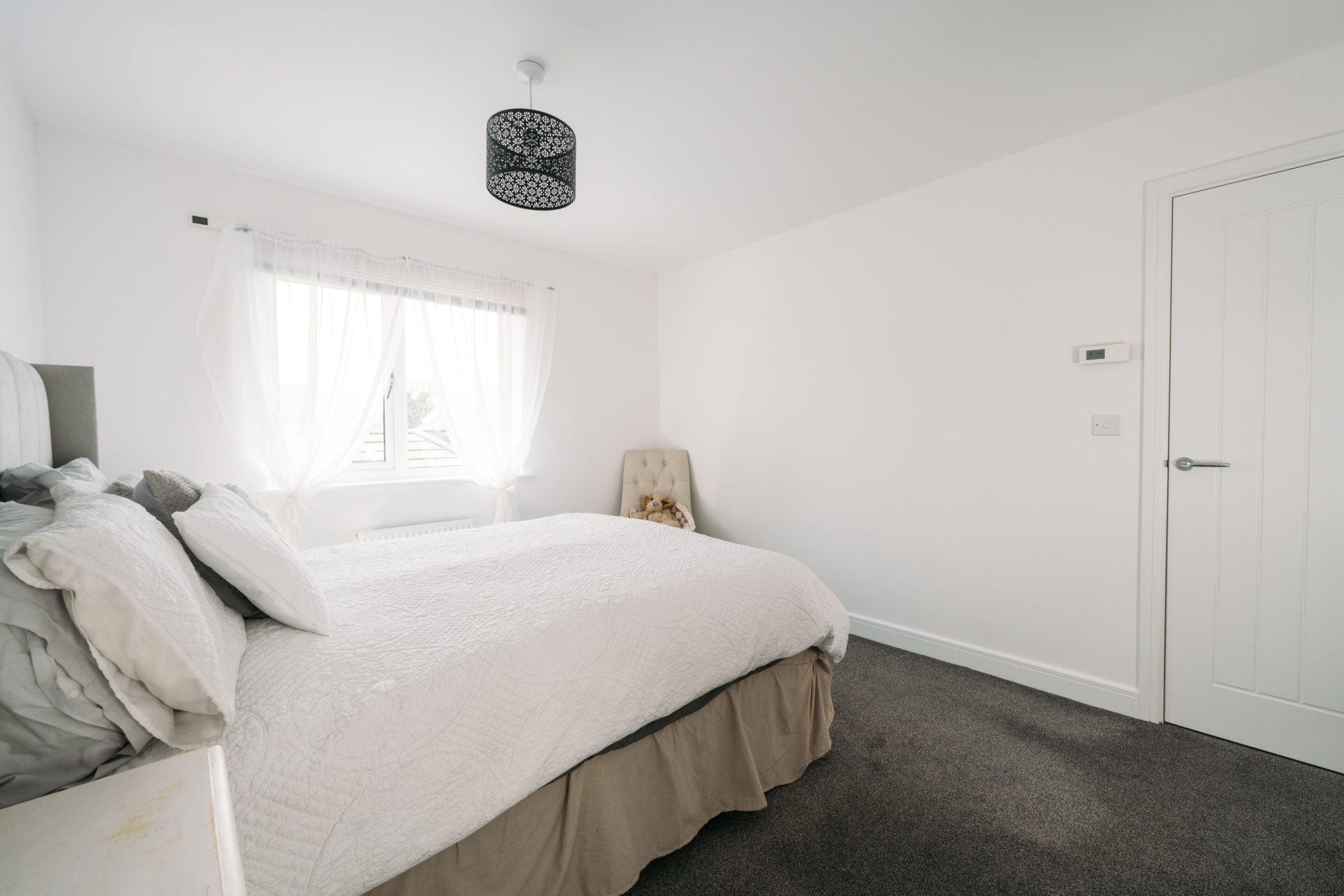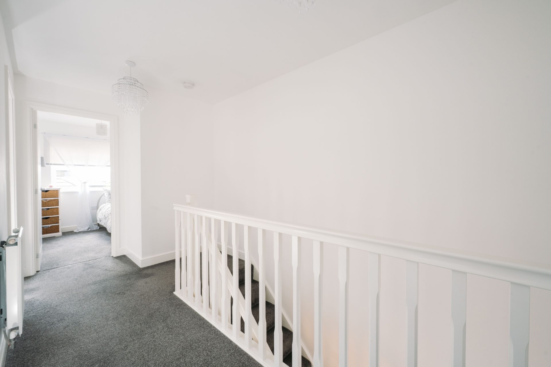 The first floor continues the same clean and modern presentation, with a spacious landing giving access to the bedrooms and bathroom.