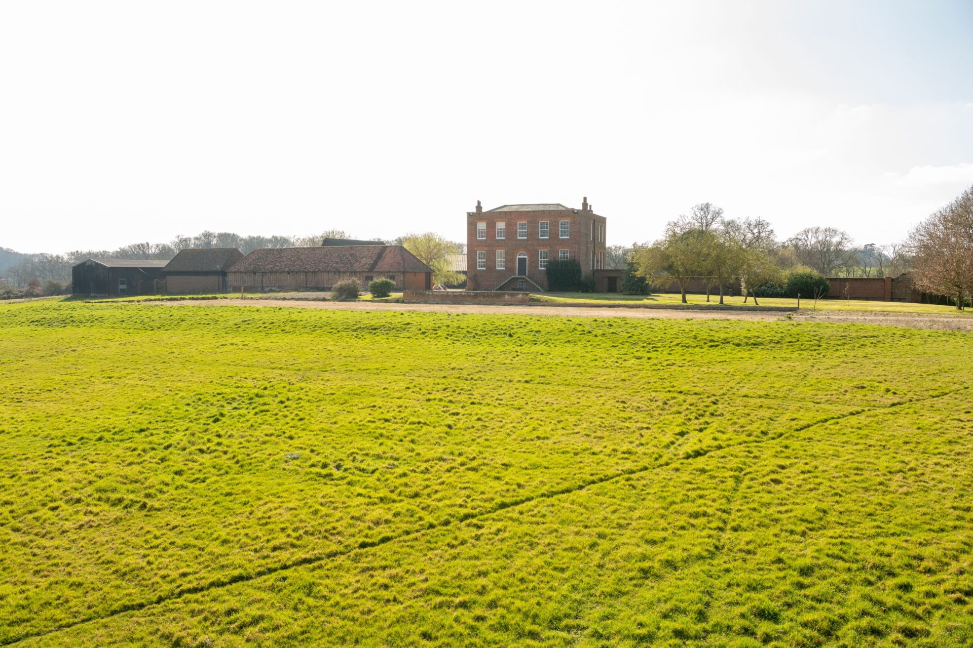 The driveway and courtyard are accessed via a long private drive from Bedford Road, leading to an elegant pillared entrance with remote-controlled gates, which provide entry to both the front of the house and the courtyard, ensuring seamless access to the stables and outbuildings.