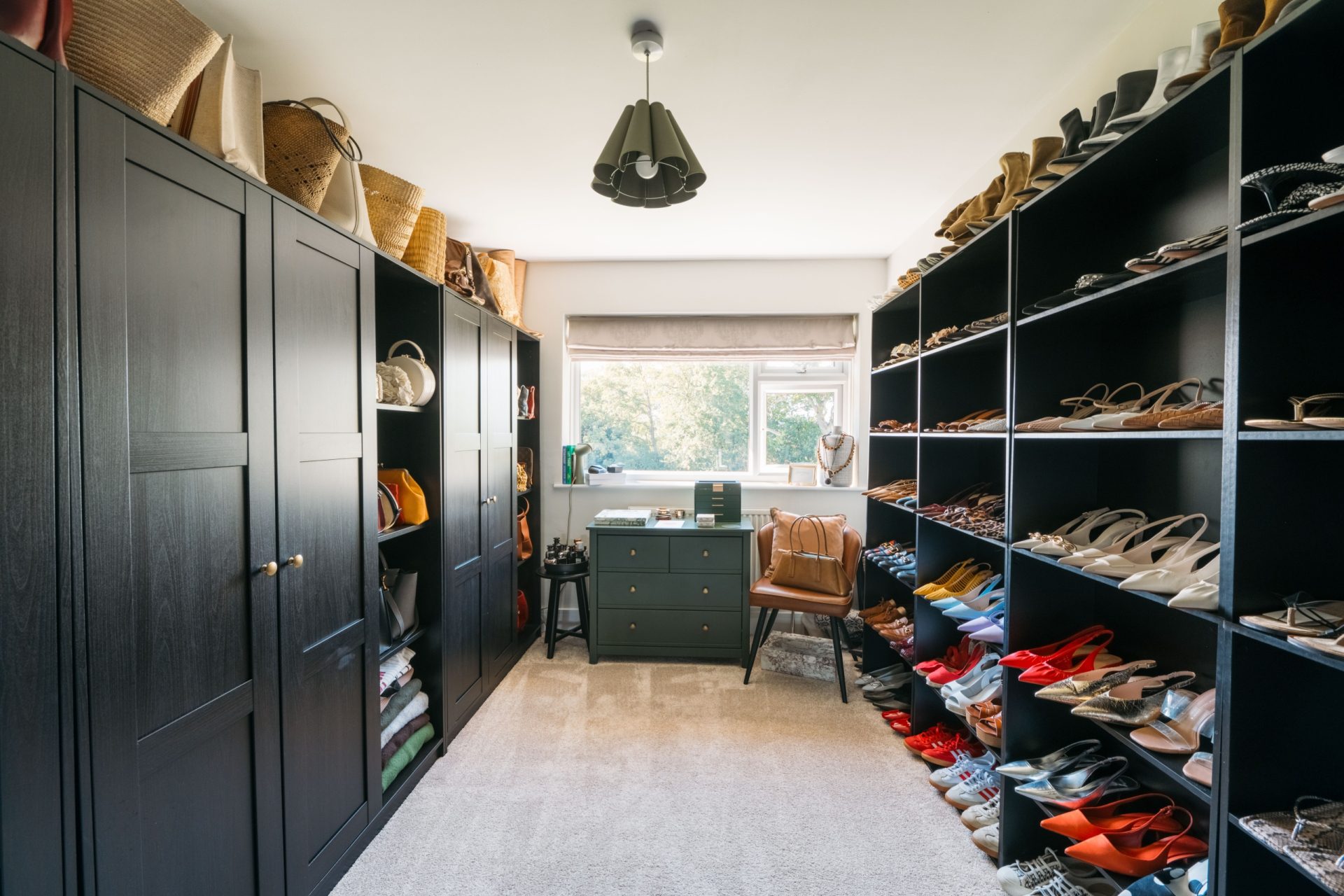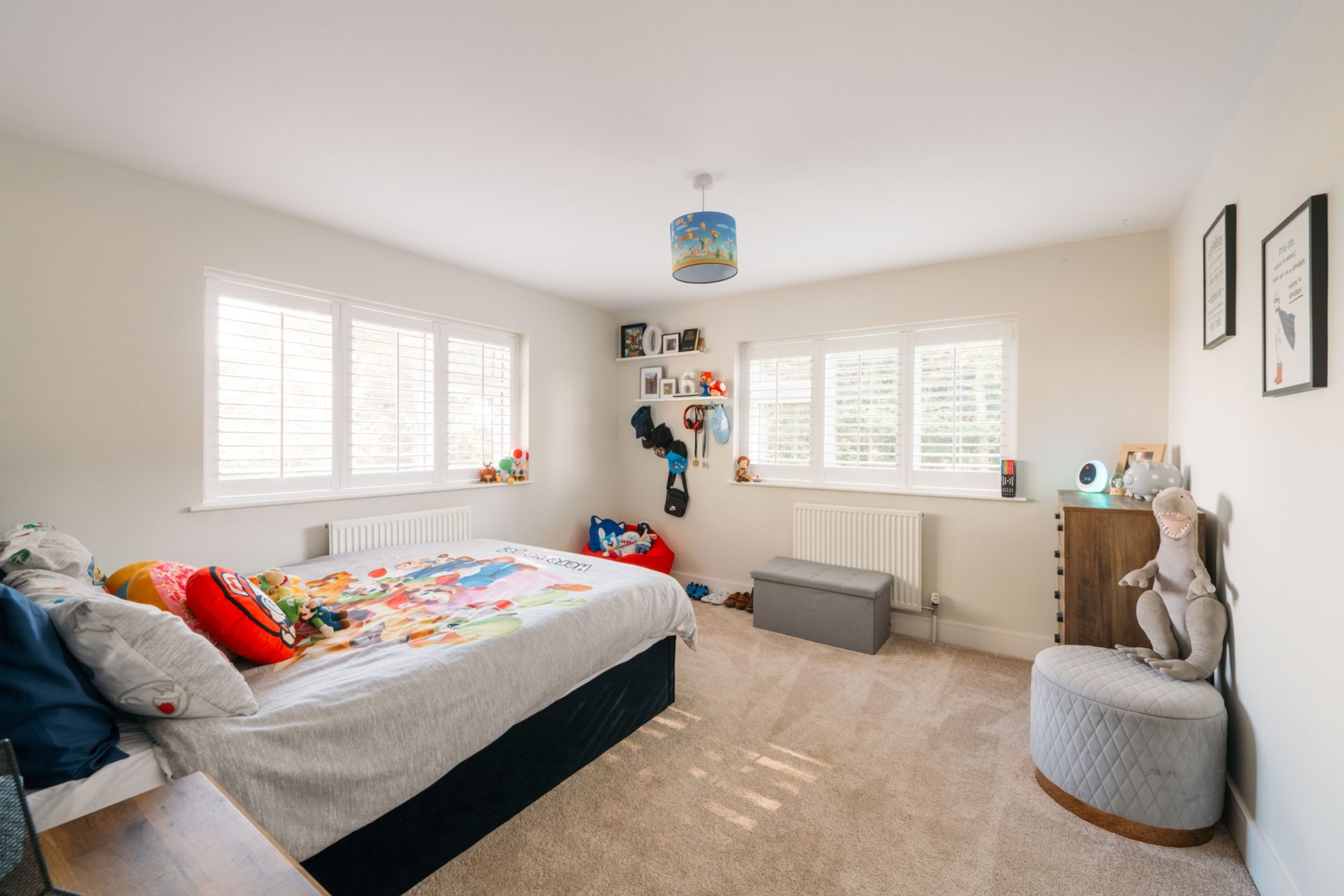 Additional bedrooms are equally well-sized, enjoying plenty of natural light and served by a contemporary family bathroom finished with sleek tiling and quality fittings. One room has been transformed into a luxurious dressing room, providing floor-to-ceiling storage and a boutique feel, while others are arranged as children’s bedrooms and guest accommodation.