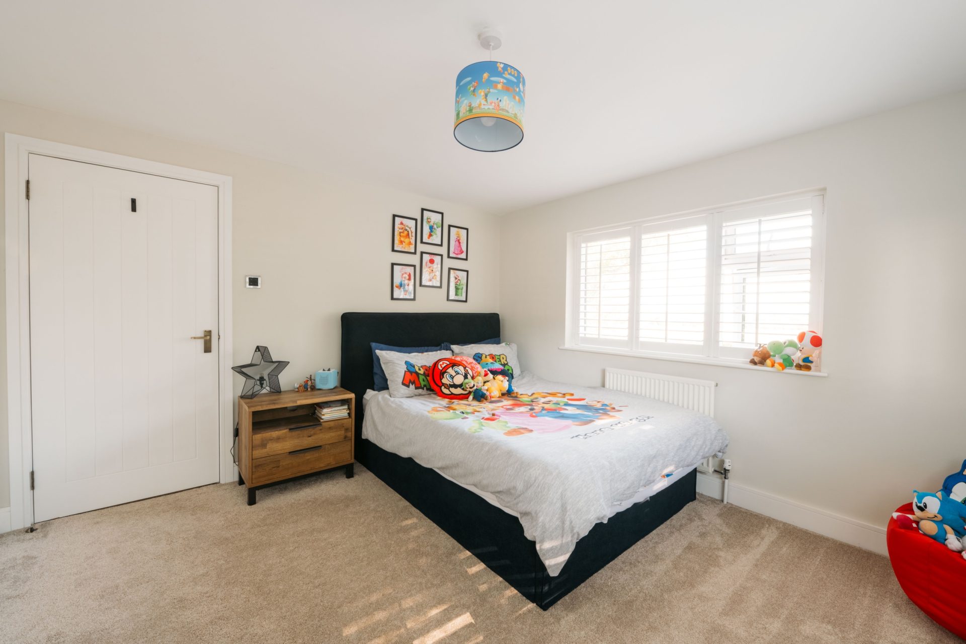Upstairs, the property continues to impress with generously proportioned bedrooms and a thoughtful layout. The principal suite is a standout feature, offering a large double bedroom with space for additional furnishings, dual-aspect windows, and a calming neutral décor.