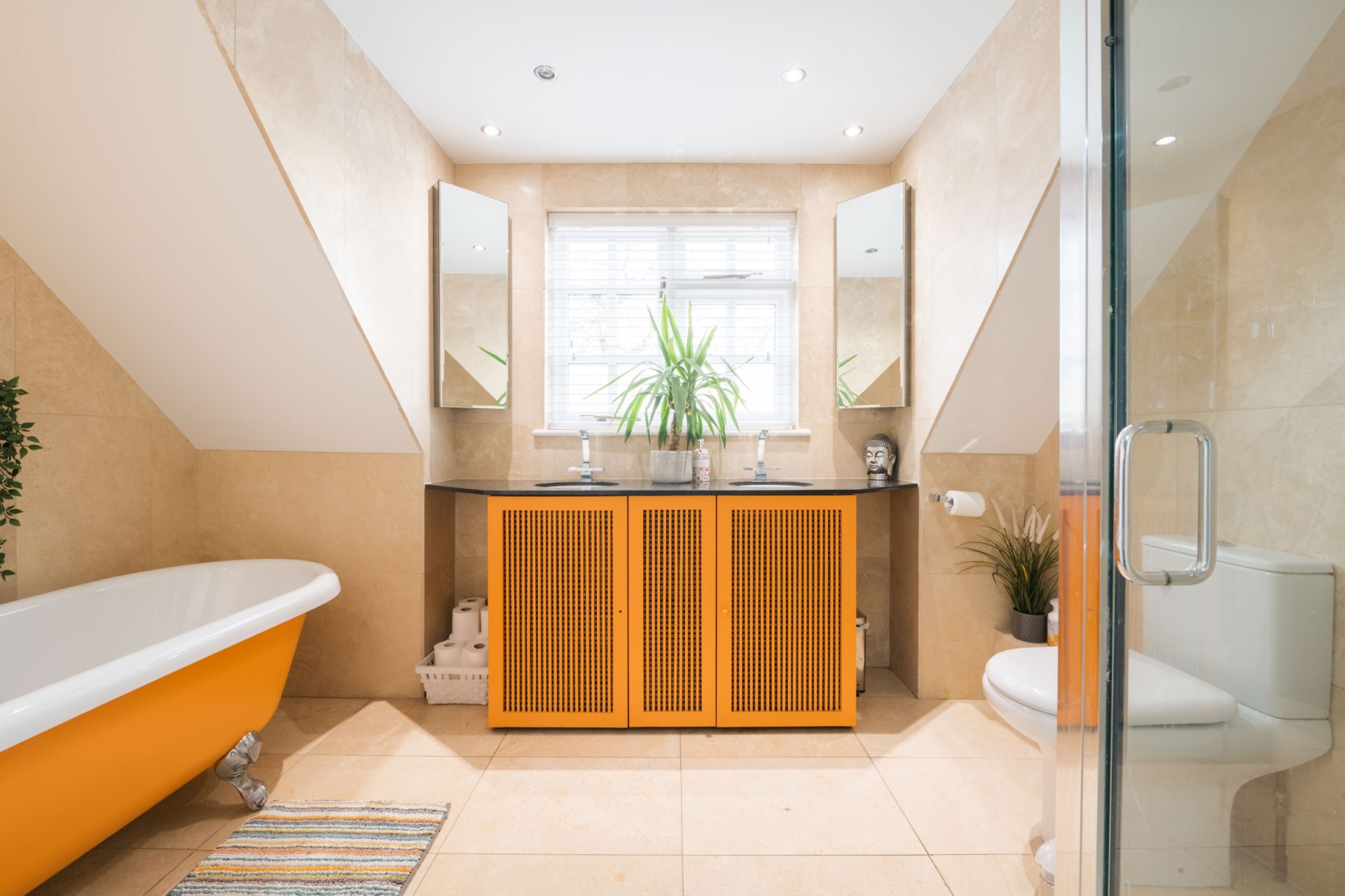 There are five double bedrooms in total. The master bedroom, which is located at the back of the property, is spacious and features a walk-in wardrobe and an en suite shower room with contemporary sanitary ware.