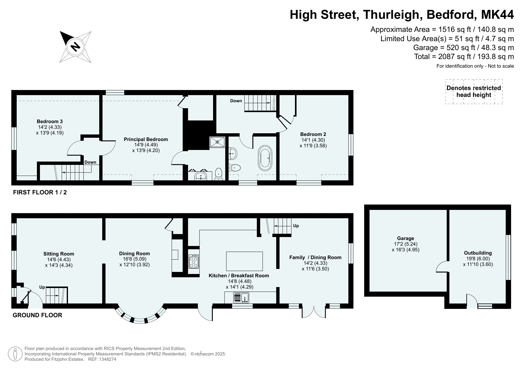 The first floor continues the balance of period character and modern design. The principal bedroom is generous in size, with exposed beams and painted finishes creating a restful and timeless atmosphere. This is supported by an en suite shower room with contemporary sanitaryware. Two further double bedrooms provide excellent accommodation, each retaining the charm of the original cottage.
