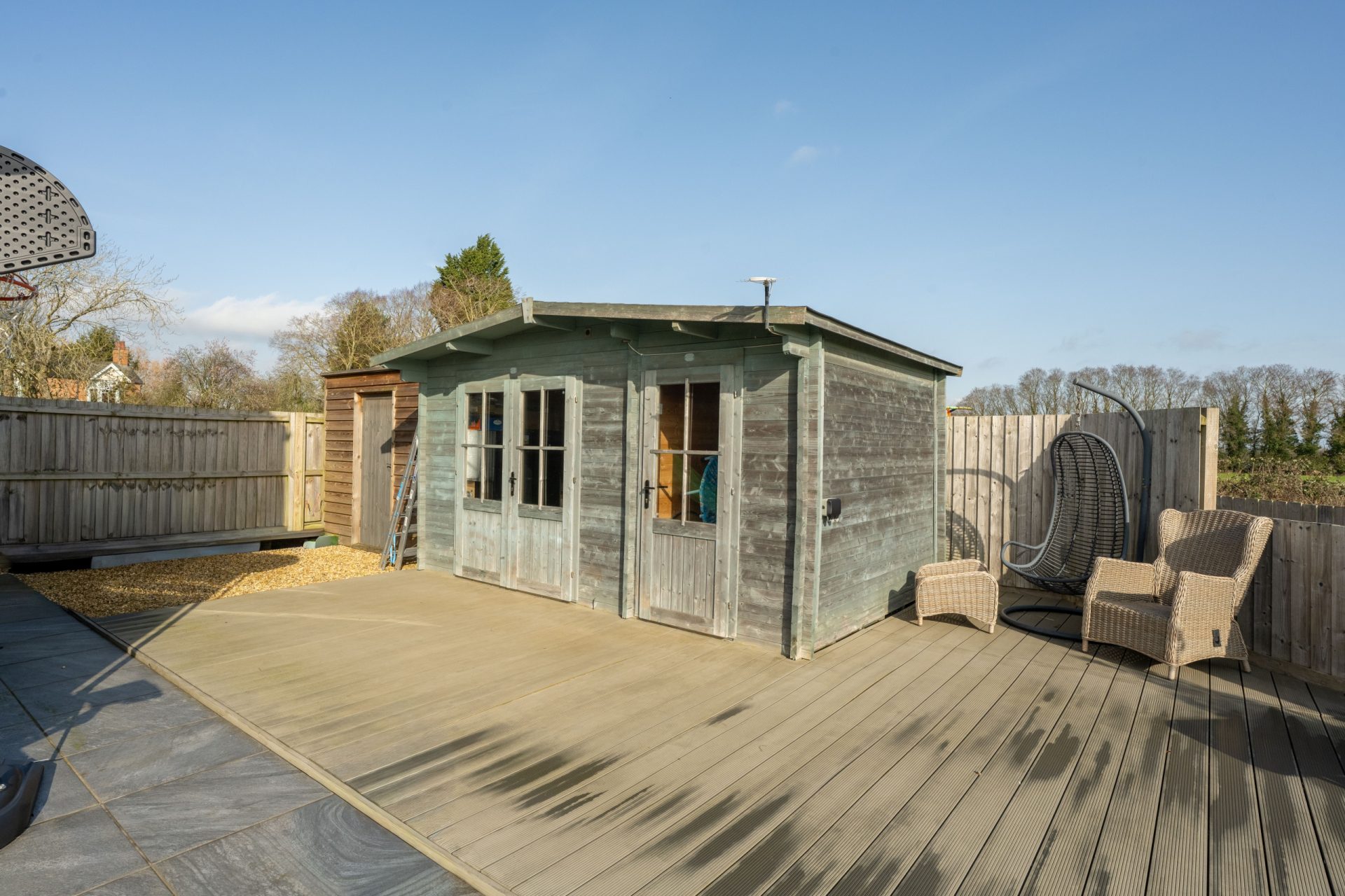 A substantial timber garden studio provides additional flexibility, ideal as a home office, gym or hobby space.