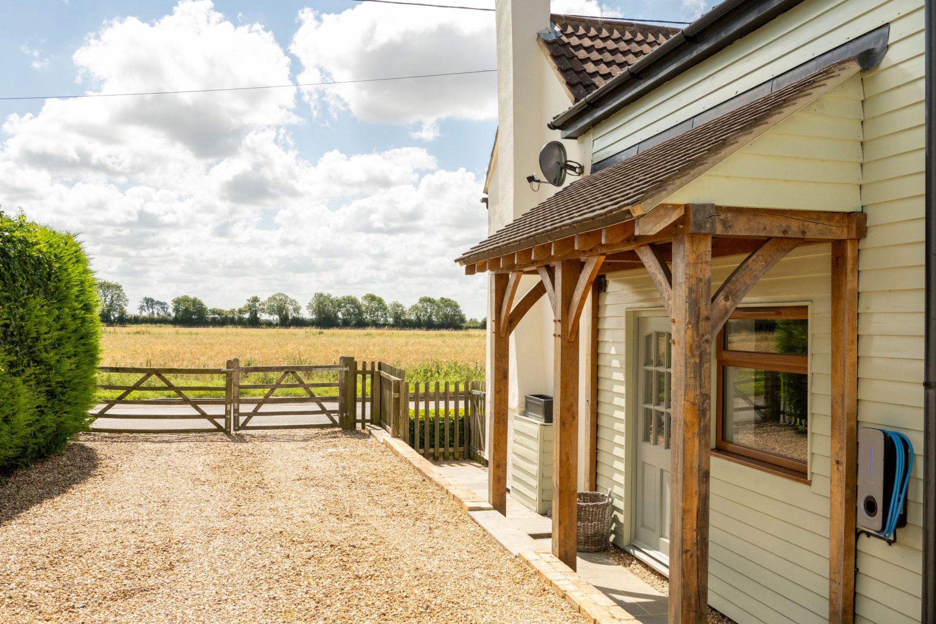The front entrance to the property is through a beautiful oak-framed structure with floor-to-ceiling glass panels and a large oak front door. This porch provides access to the downstairs fourth bedroom which is currently used as a playroom, the rest of the reception rooms and the stairs which rise to the first floor. All the rooms which overlook the front of the property benefit from undisrupted views over the open countryside.