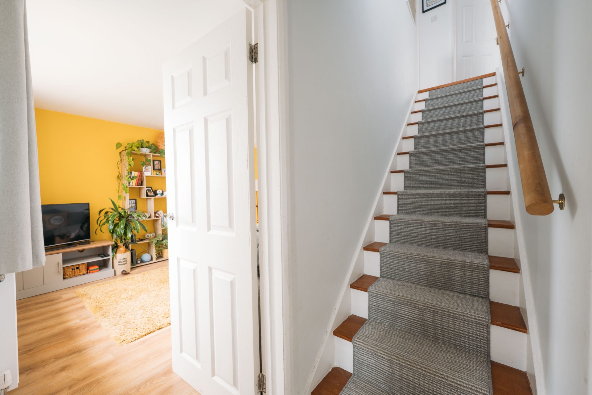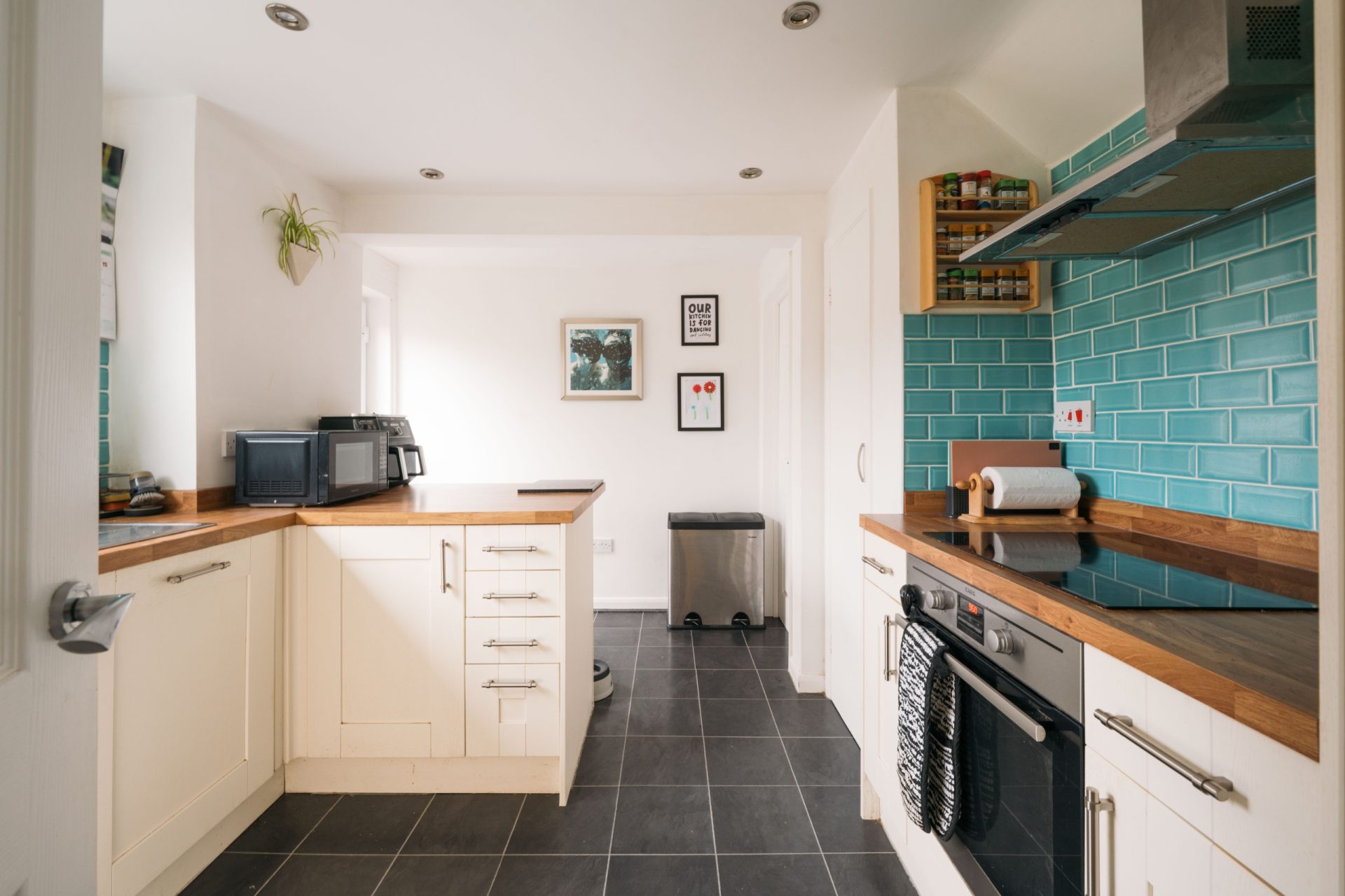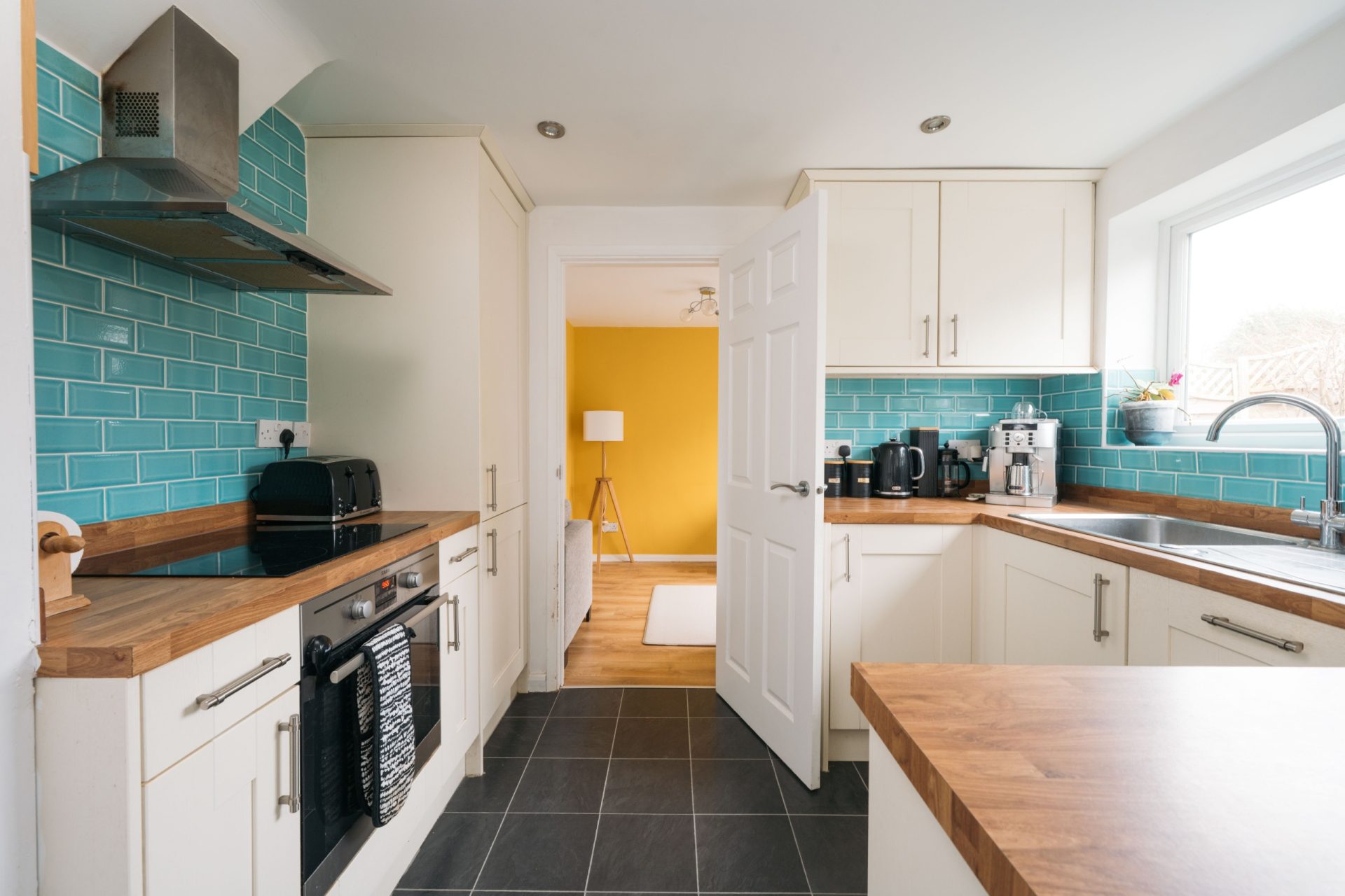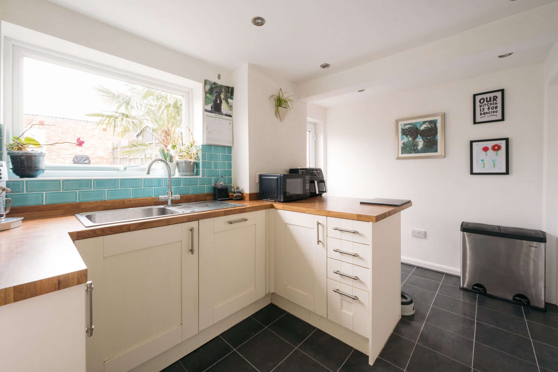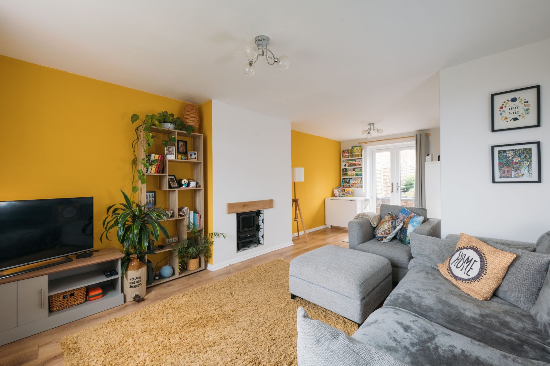 The ground floor offers a bright and welcoming lounge/diner with patio doors opening directly onto the garden, creating a natural connection between inside and out. The room is well-proportioned, with space for both comfortable seating and a dining table. The kitchen has been opened up to create a more sociable layout and features shaker-style units, solid wood worktops and distinctive tiled splashbacks.