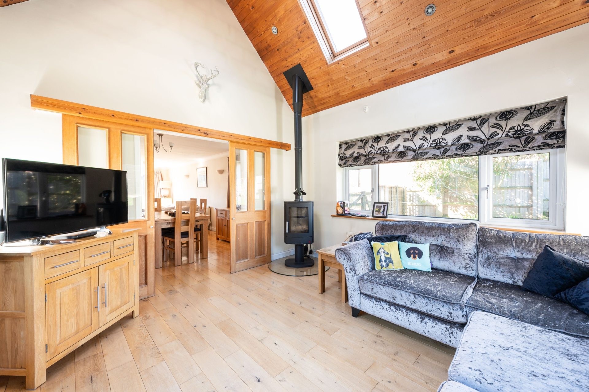 The property has been thoughtfully arranged to provide a balance of open-plan and more traditional spaces, with a particular highlight being the expansive kitchen and interconnected reception rooms. The layout also offers flexibility, including the potential for ground-floor bedroom accommodation if required.