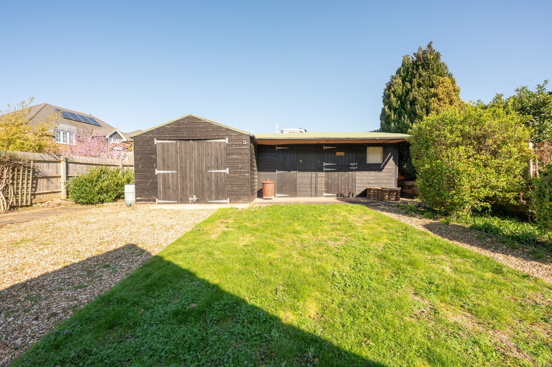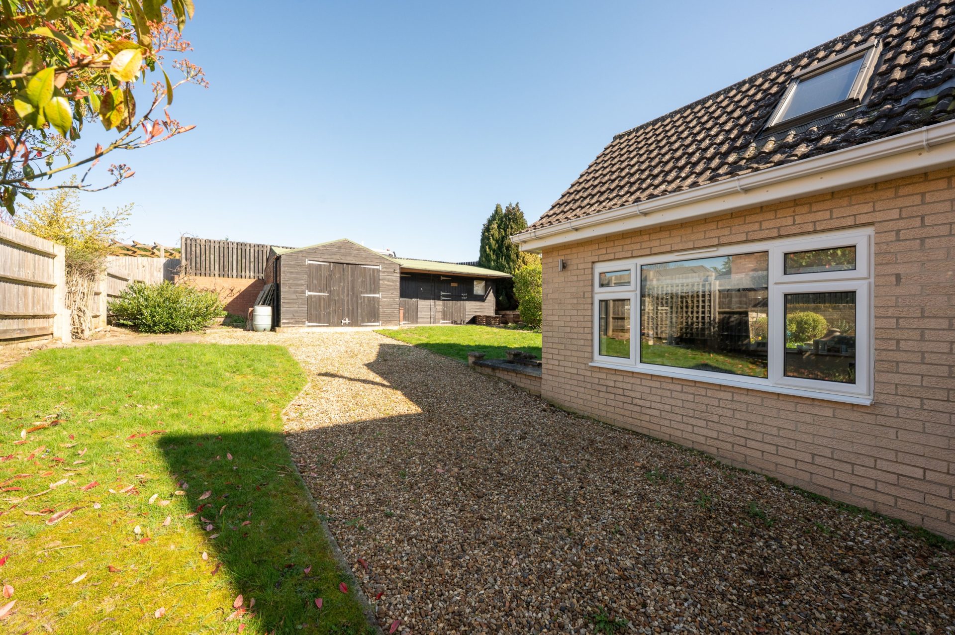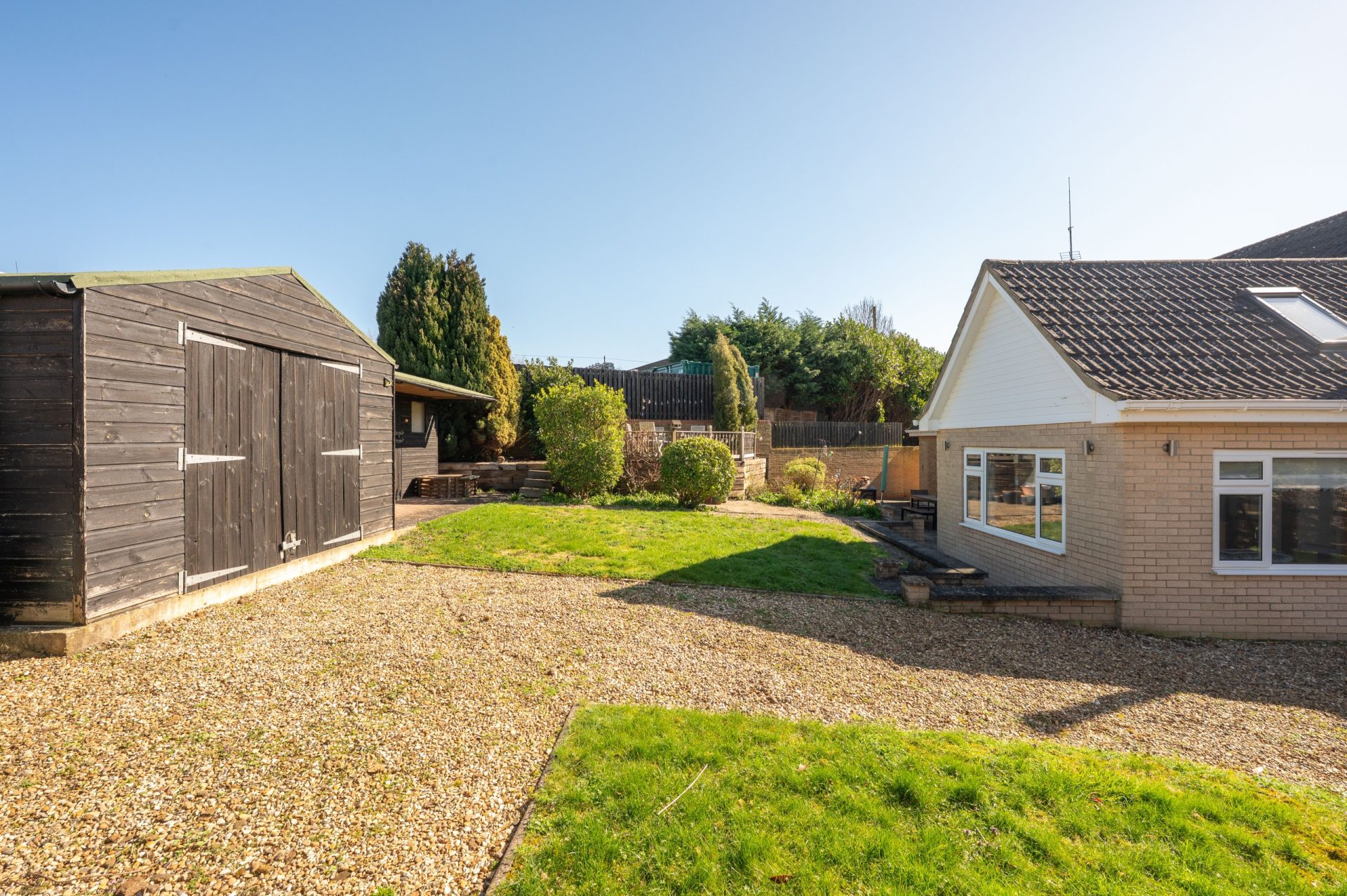 The rear garden offers a good degree of privacy and is mainly laid to lawn, with space for seating and outdoor entertaining. The plot is well proportioned, providing a balance of usable garden space without being overly demanding.