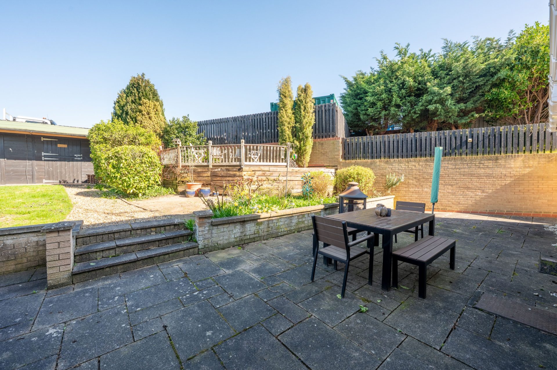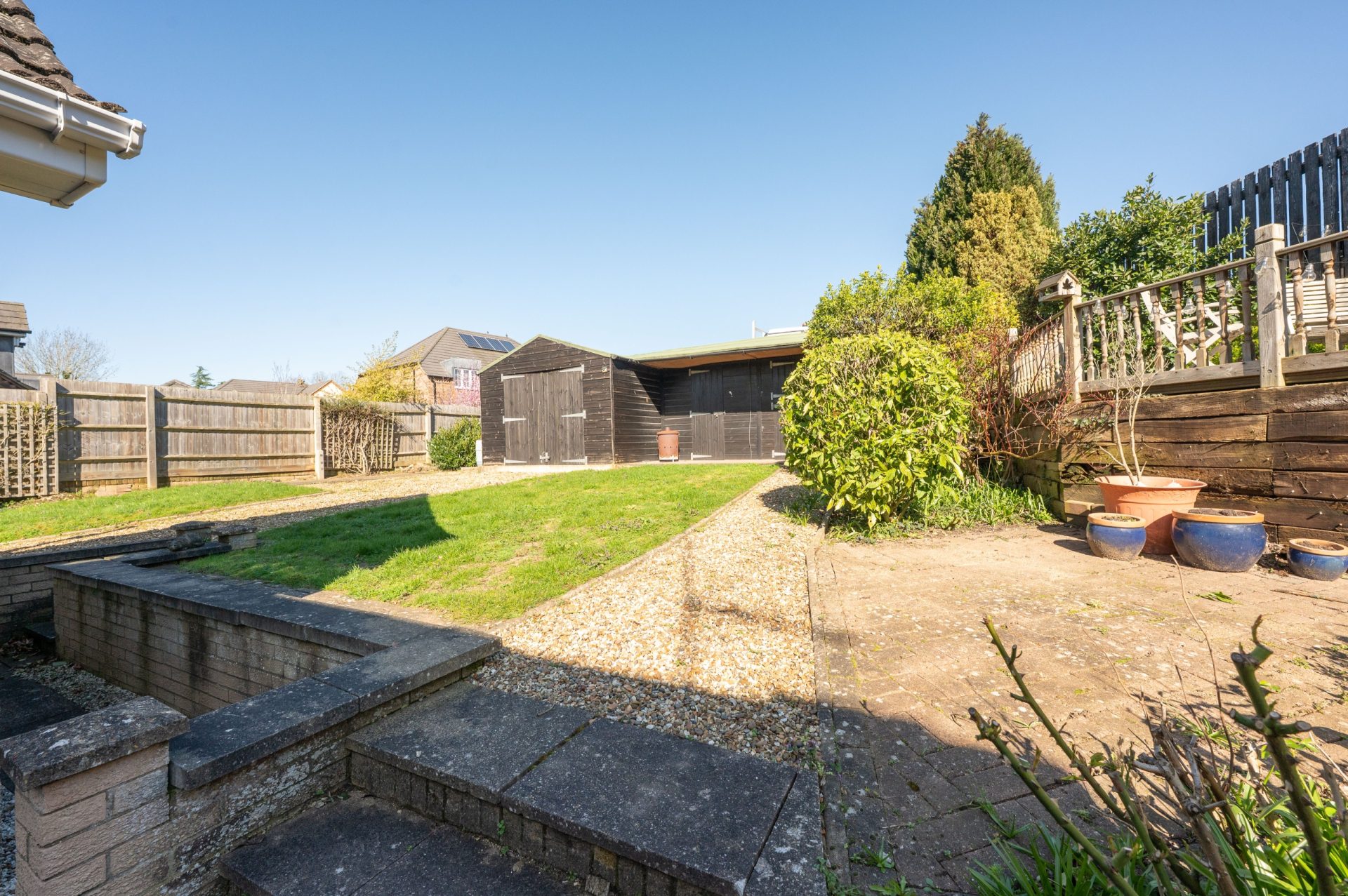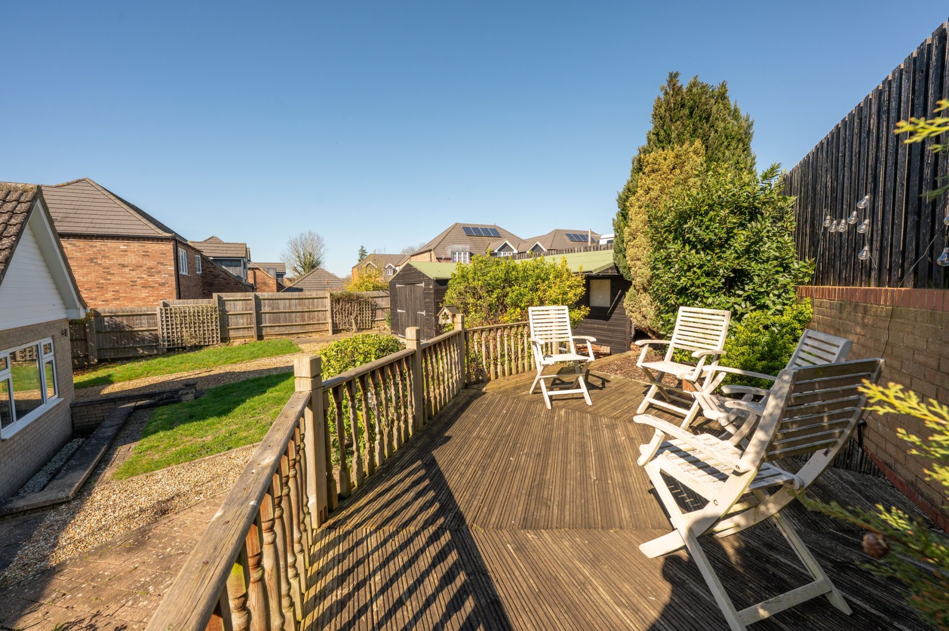 The rear garden offers a good degree of privacy and is mainly laid to lawn, with space for seating and outdoor entertaining. The plot is well proportioned, providing a balance of usable garden space without being overly demanding.
