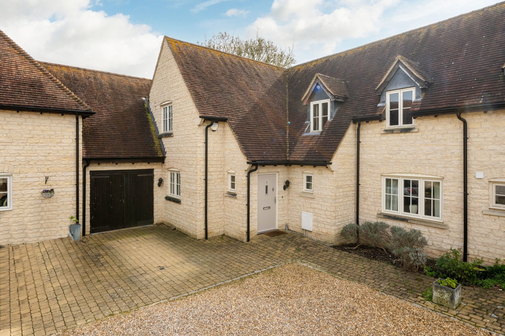 Bedrooms three and four both overlook the courtyard to the front of the property and benefit from built-in wardrobe spaces. On the landing, there is an airing cupboard located next to the family bathroom, which also has modern sanitary-ware and floor-to-ceiling tiling.