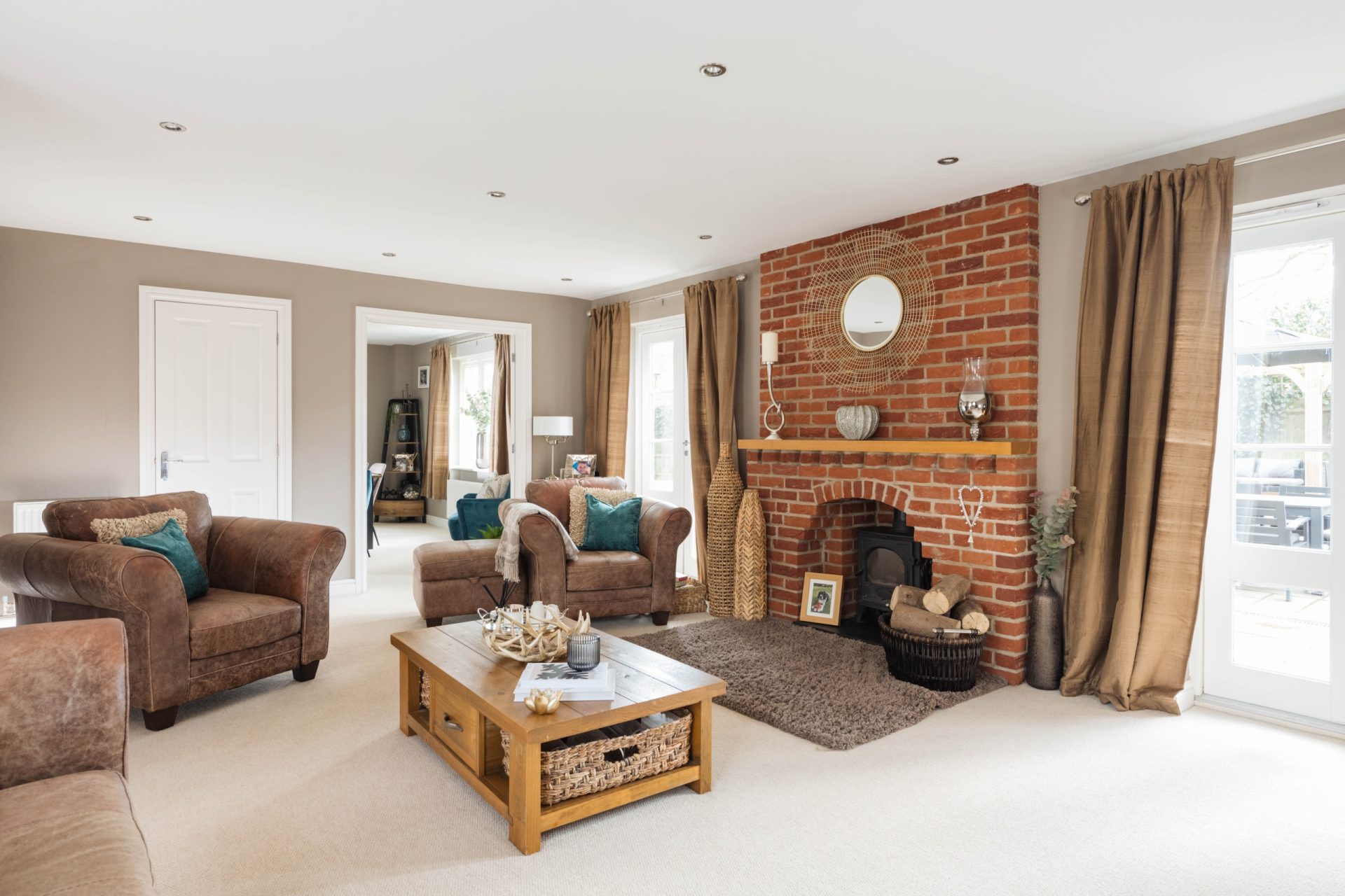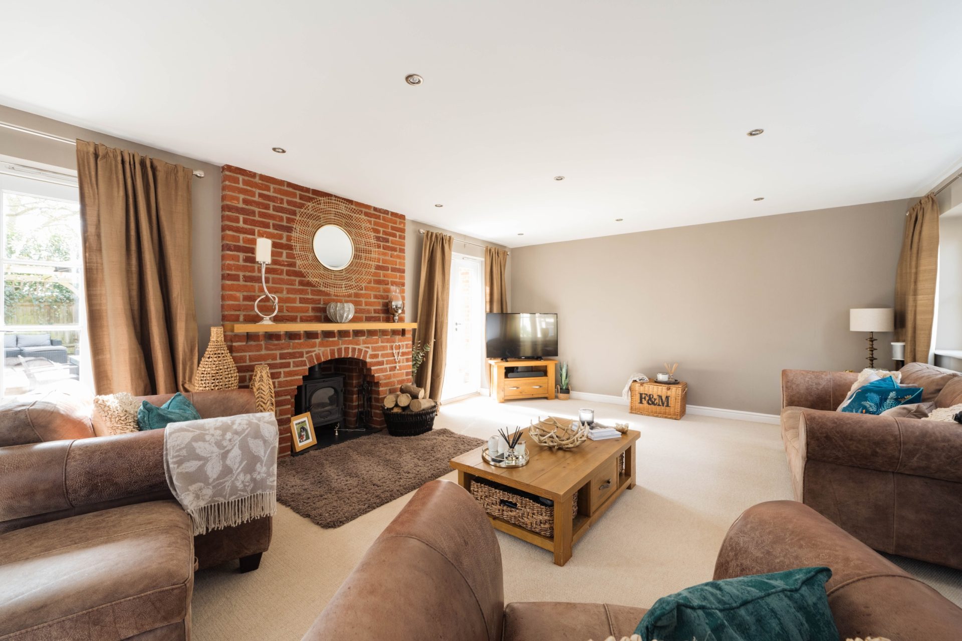 The house features a spacious entrance hallway with a storage cupboard and a downstairs WC.At the rear of the house, there is a well-proportioned family sitting room with a log-burning stove as the main feature. This room is bright and airy, boasting two sets of patio doors leading to the rear garden. There are internal double doors leading to the dining room which offers scenic views of the garden with patio doors leading outside, there is also a door to the kitchen.