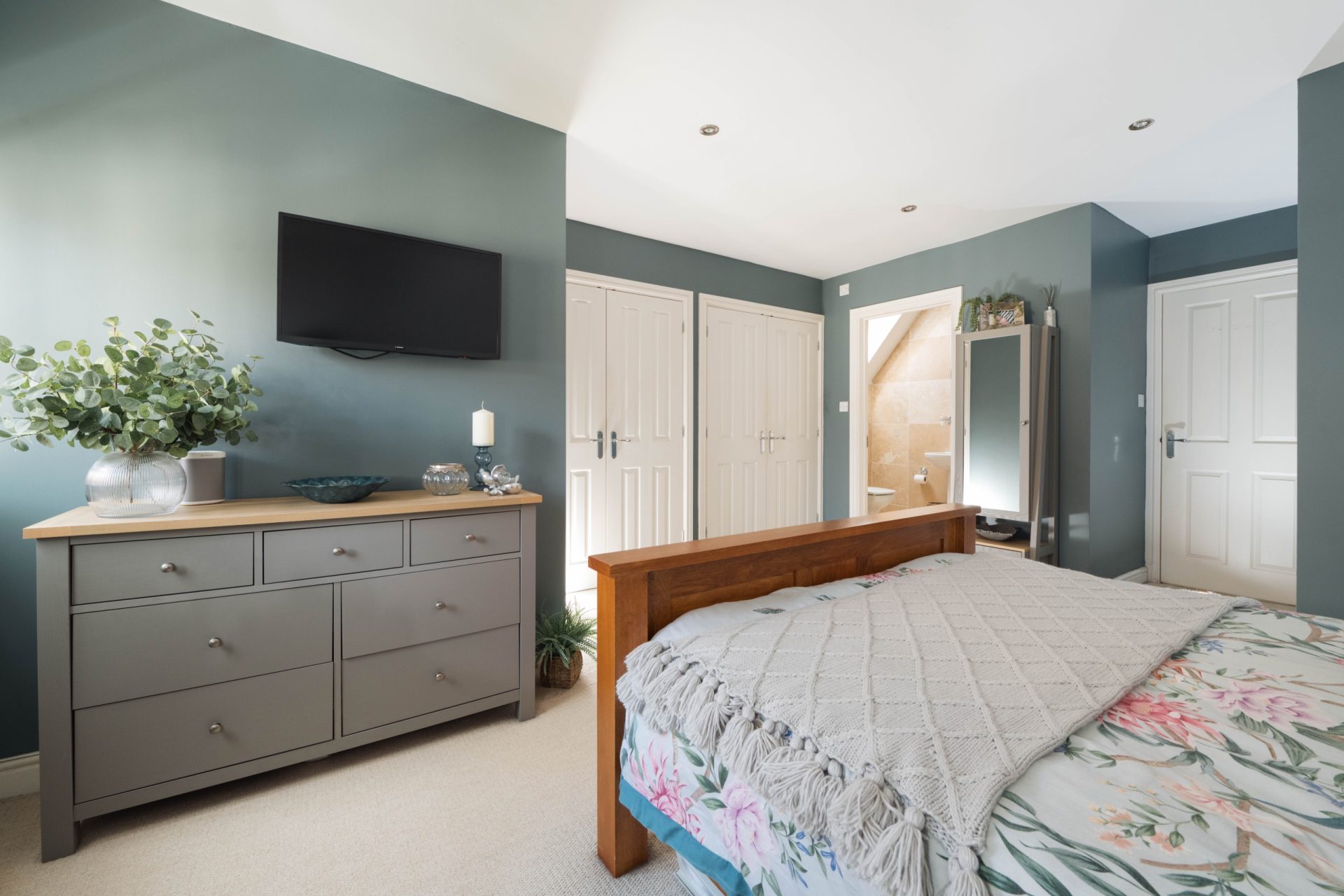 The property has four double bedrooms, with the master bedroom boasting double built-in wardrobes and an ensuite shower room with modern sanitary-ware and floor-to-ceiling tiling.