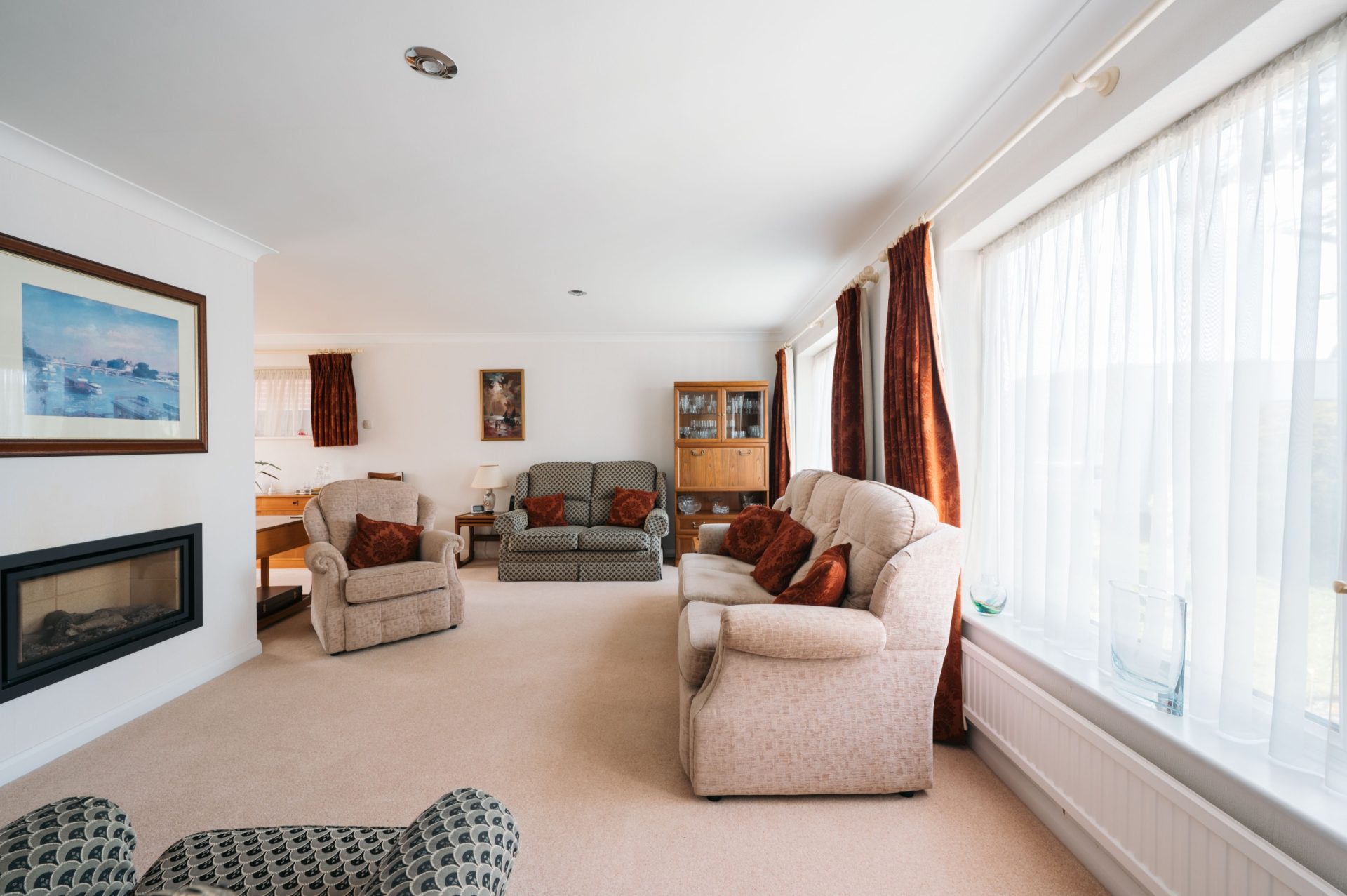 The house is entered via a porch into a central entrance hall, which gives access to the main ground floor rooms. The sitting room is a particularly generous reception space, extending to over 18 ft in length, with good natural light, ample room for seating and a fitted gas fire. It opens through to a further dining area, creating a layout that works well both for everyday living and for entertaining.