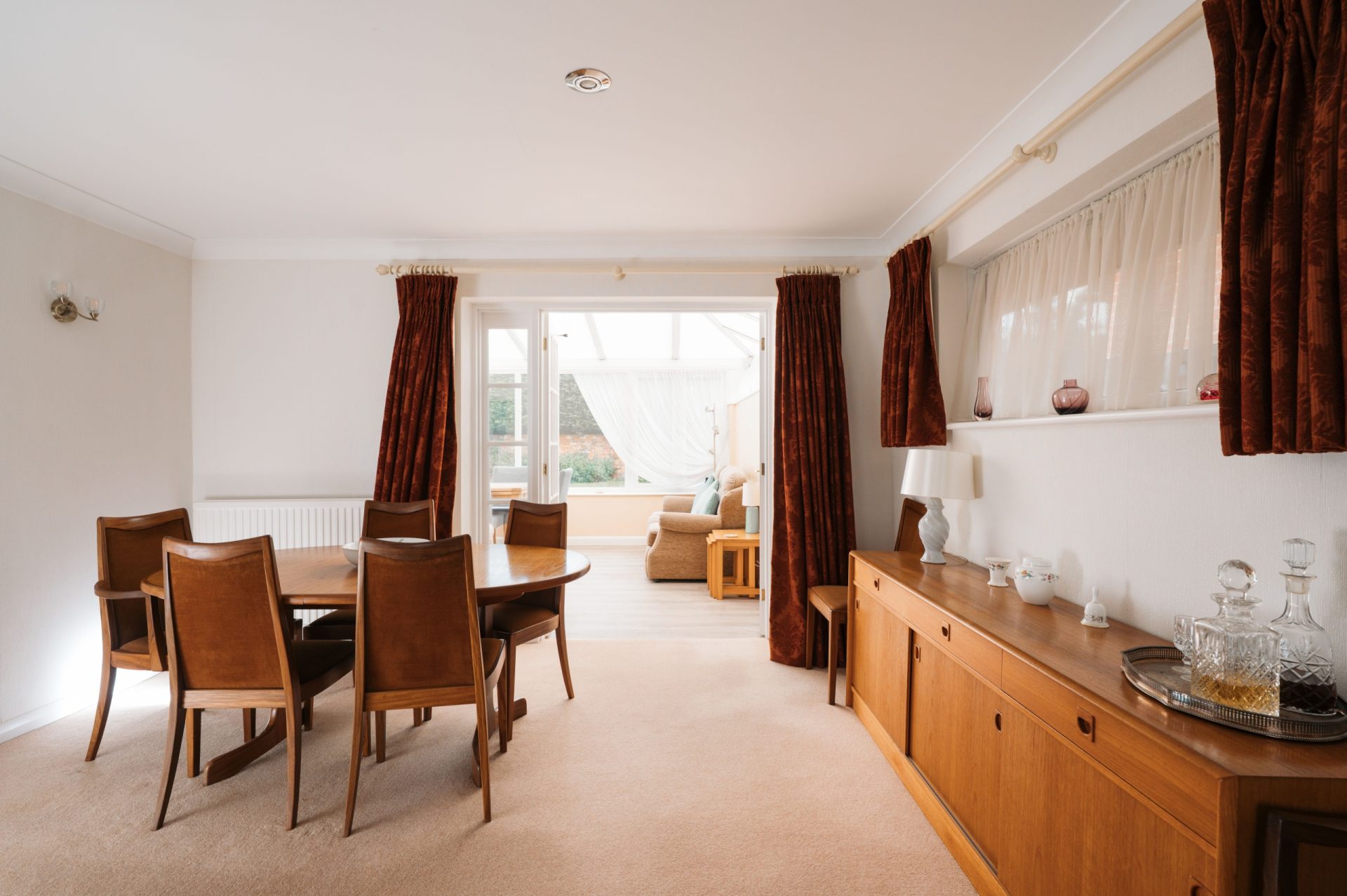 The dining room is positioned to the rear and links directly with the conservatory, which provides an additional reception area overlooking the garden. Together, these rooms give the house strong flexibility, with separate spaces that connect well for family life and larger gatherings.