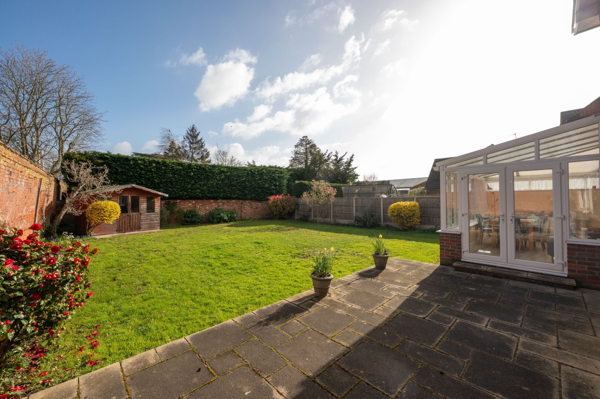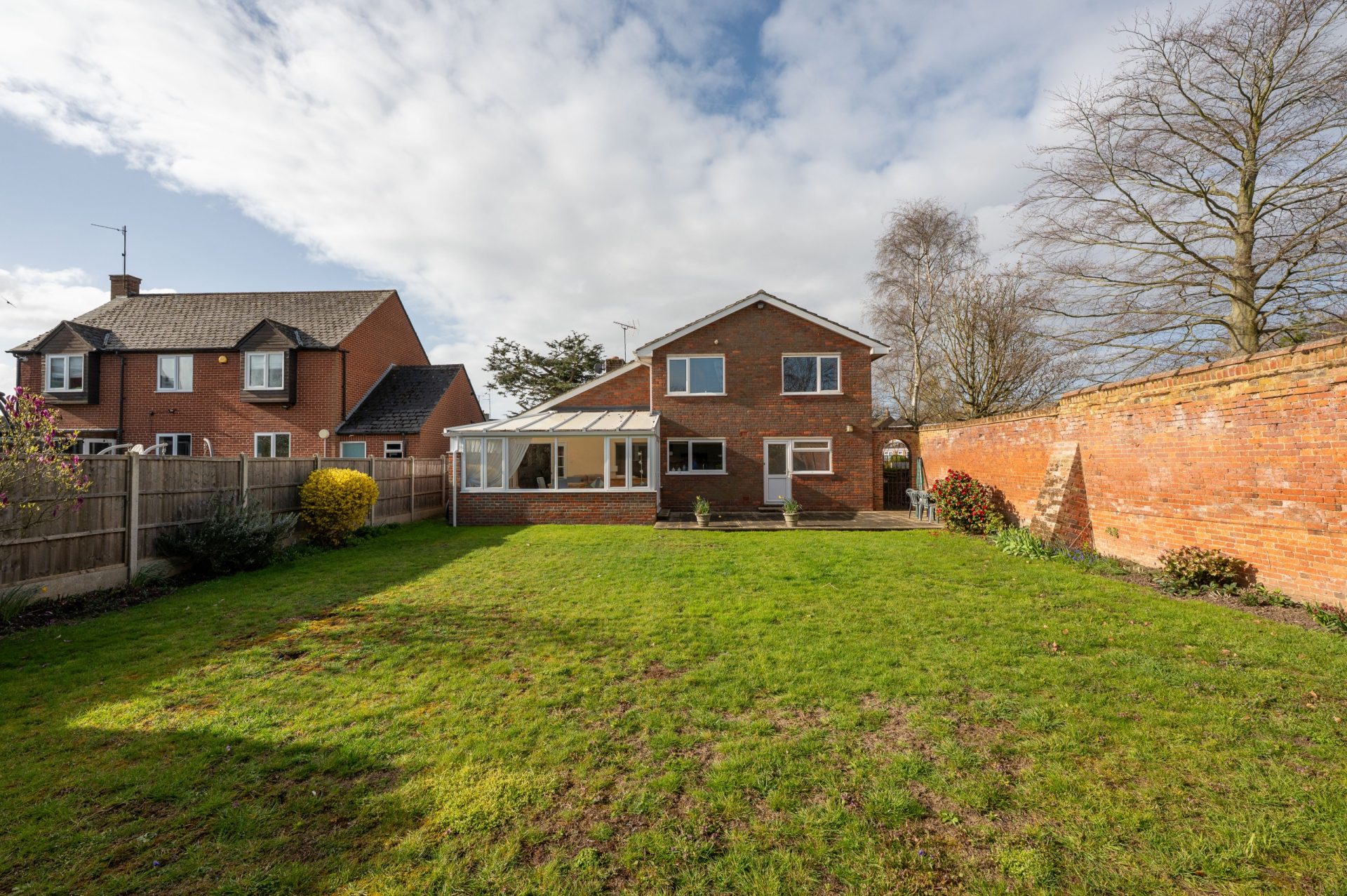 To the rear, the garden is a particularly attractive feature of the house. It is mainly laid to lawn and of a very good size, offering plenty of space for family use, entertaining or future landscaping if desired. A paved terrace runs along the rear of the house and the garden is enclosed in part by a substantial brick wall, which gives the outside space a strong sense of privacy and enclosure.
