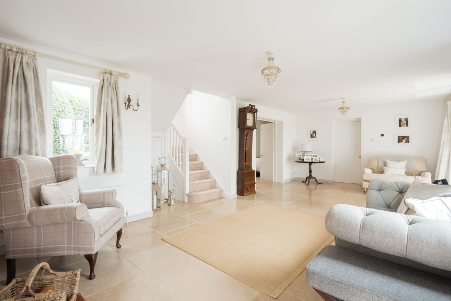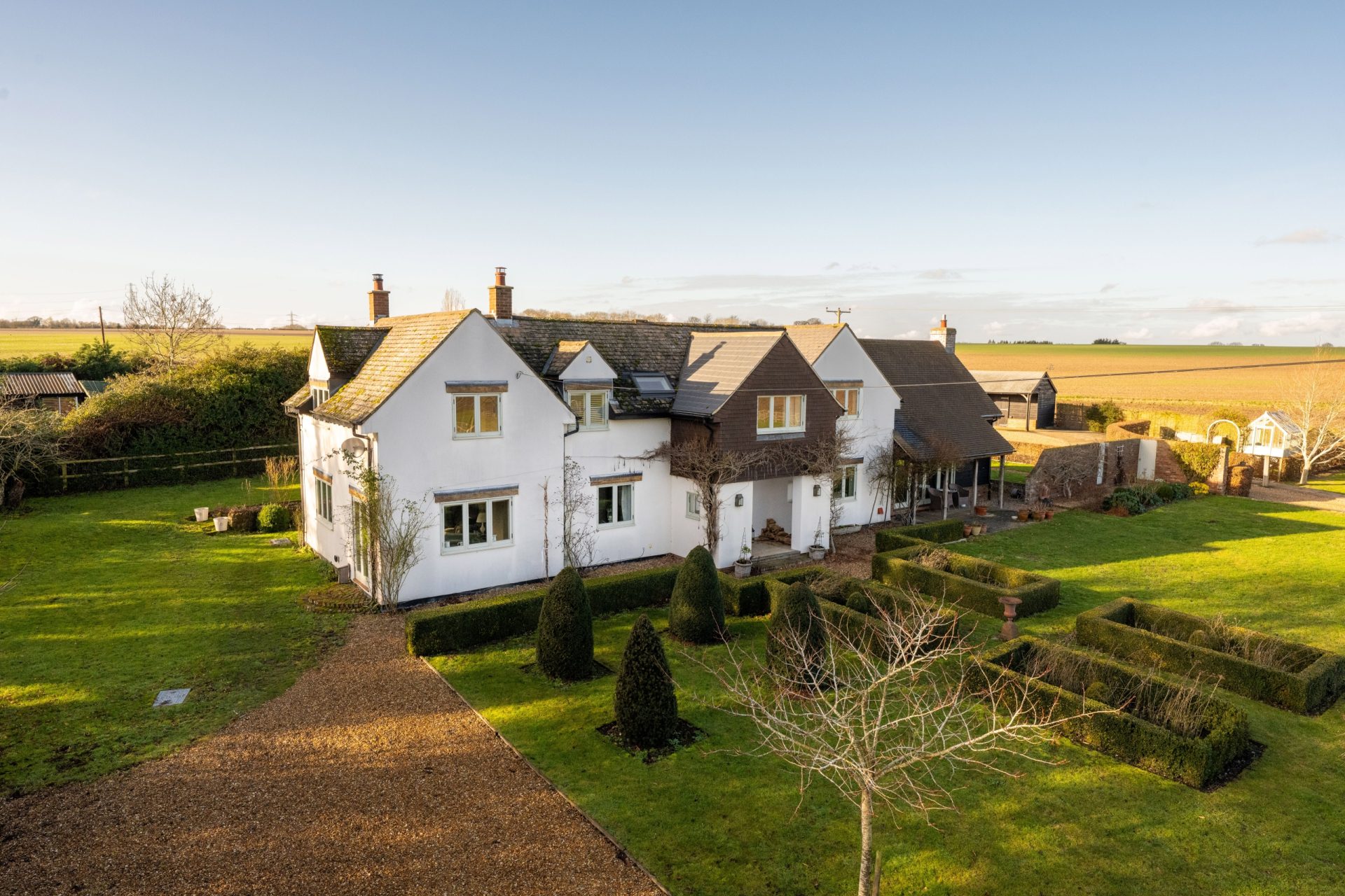 The property has been thoughtfully improved to create a home that feels both characterful and contemporary, with highlights including a bespoke Neptune kitchen with Aga, refitted bath and shower rooms throughout, and a limestone flooring theme across the ground floor incorporating underfloor heating. The layout works particularly well for modern family life, with three reception rooms as well as a superb open-plan kitchen/dining/family room, while outside, the equestrian facilities are well arranged and purpose-built.