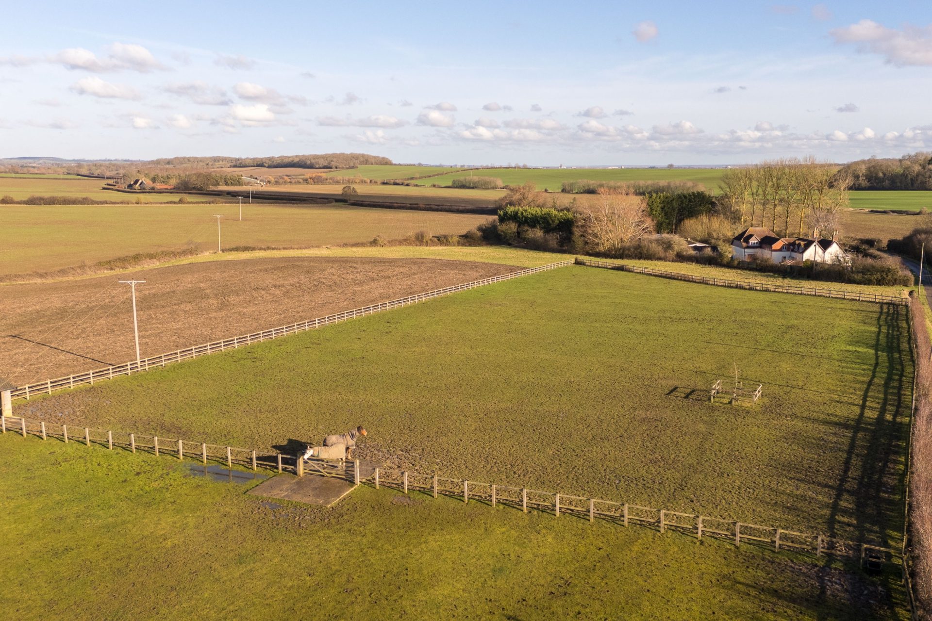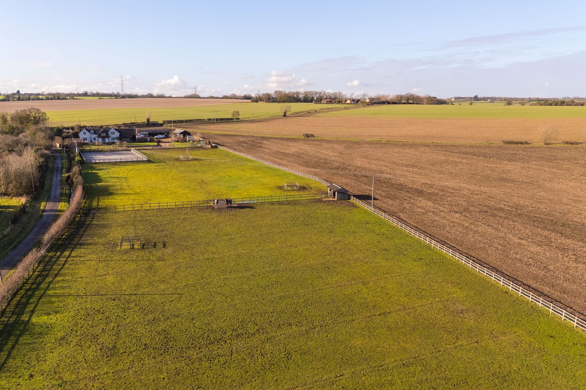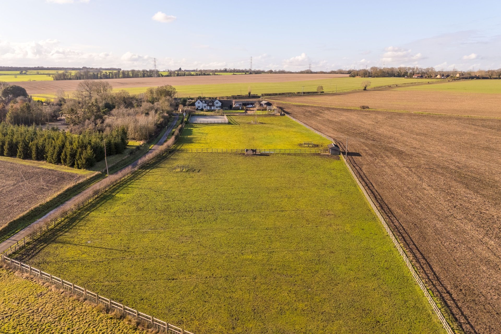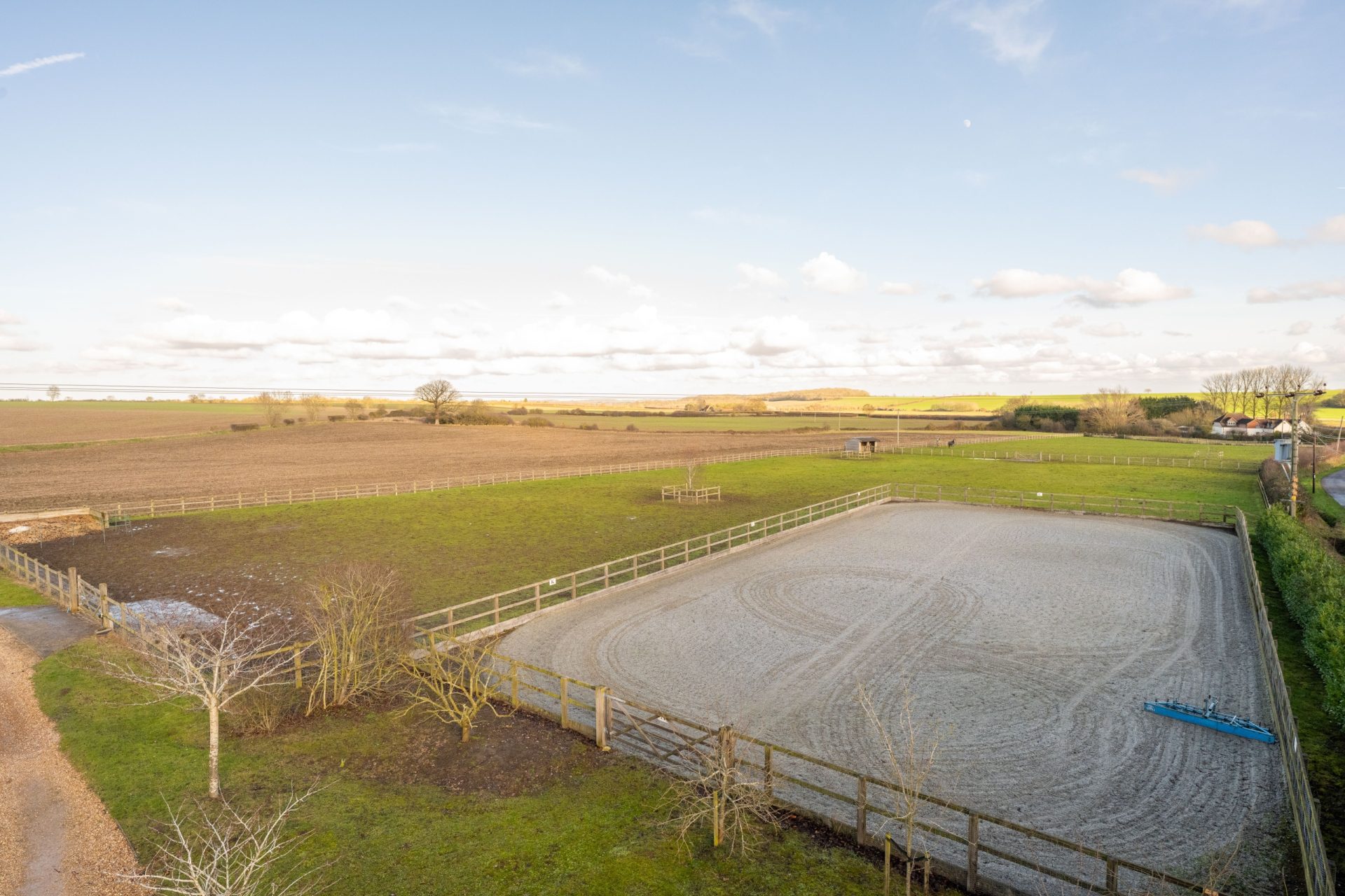 The current owners have also installed a 40m x 20m manège, constructed by Elmstree Construction, with a sand and fibre surface and power connected, providing an excellent training area suitable for regular use. In addition, the property benefits from direct access to local bridle paths, making it ideal for those who enjoy riding out from home.