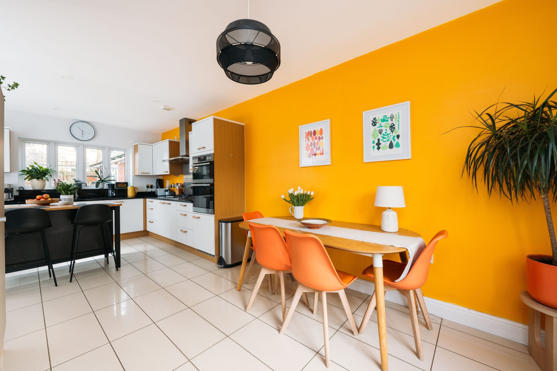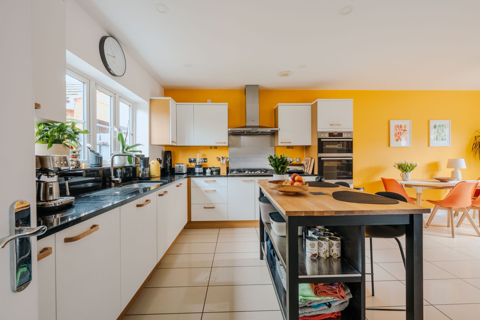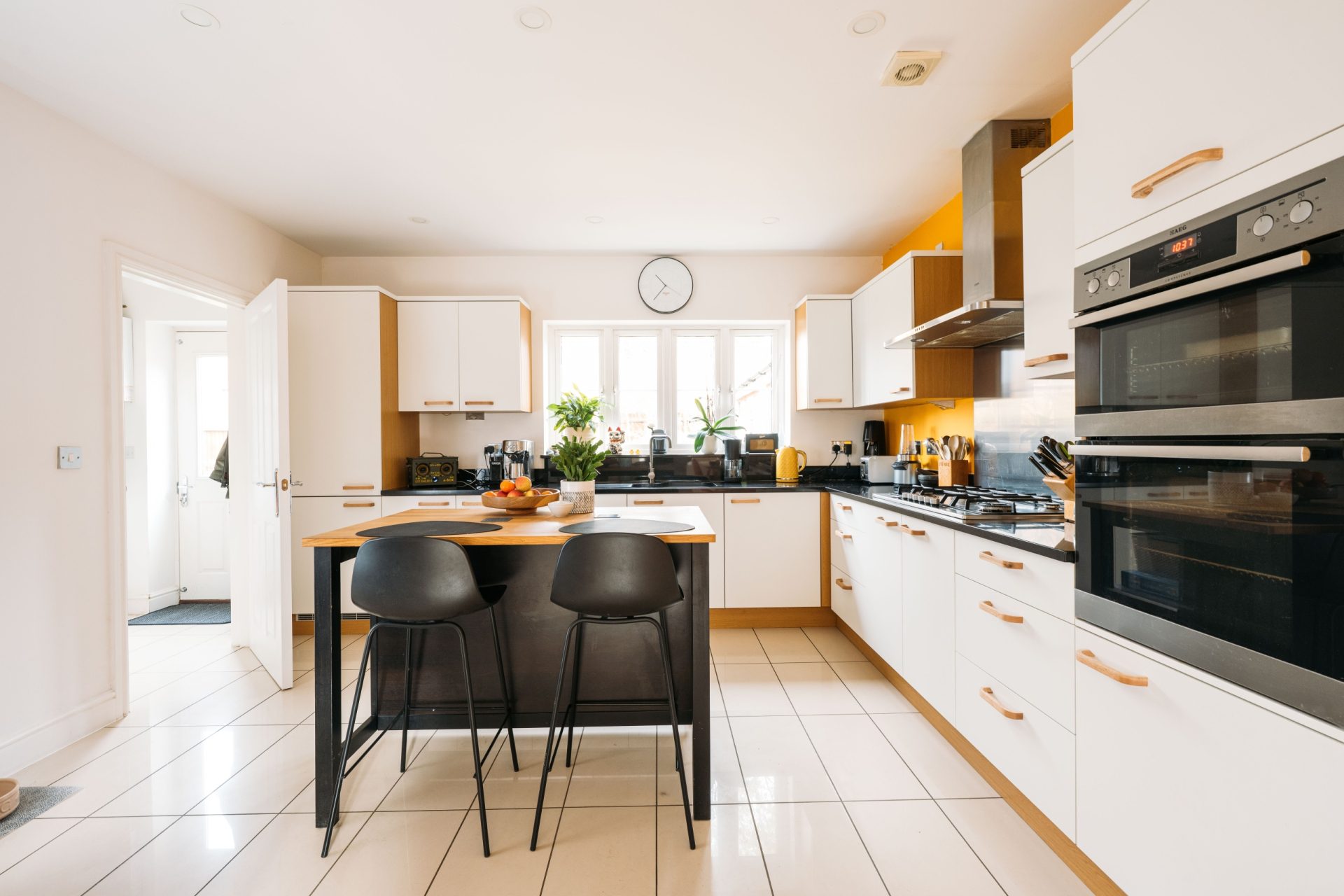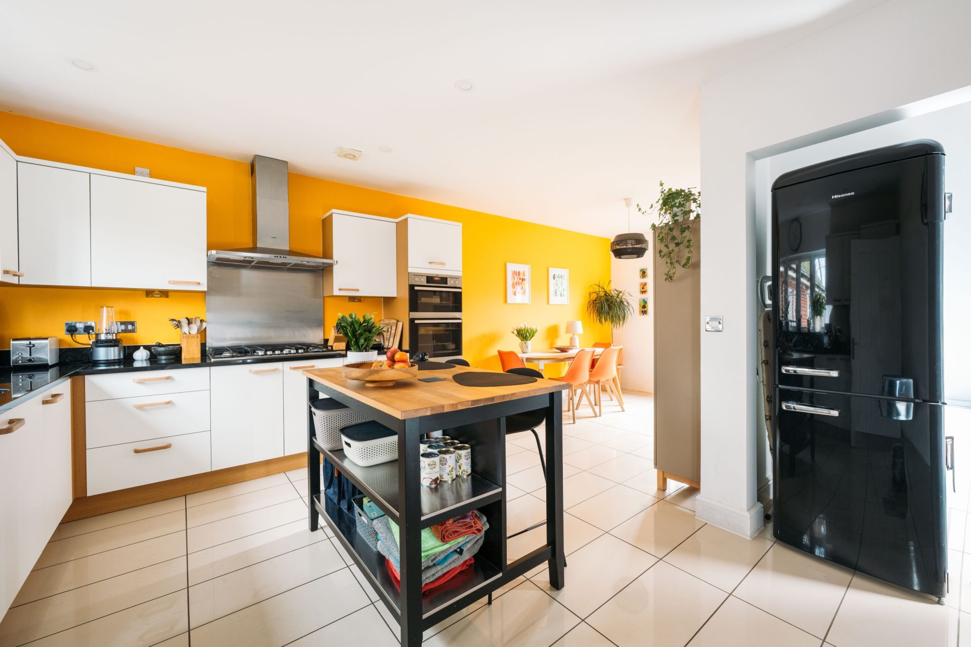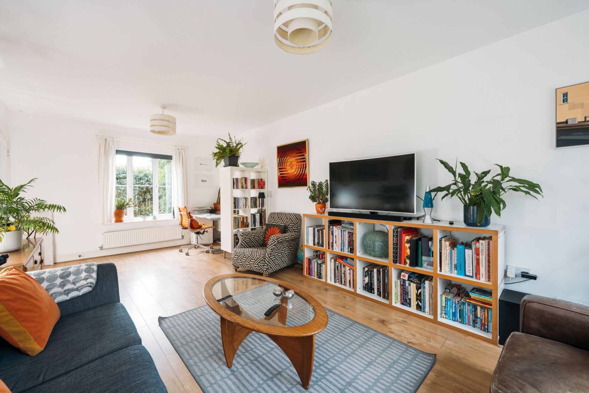 - Open-plan kitchen/dining room with central island and separate sitting room
