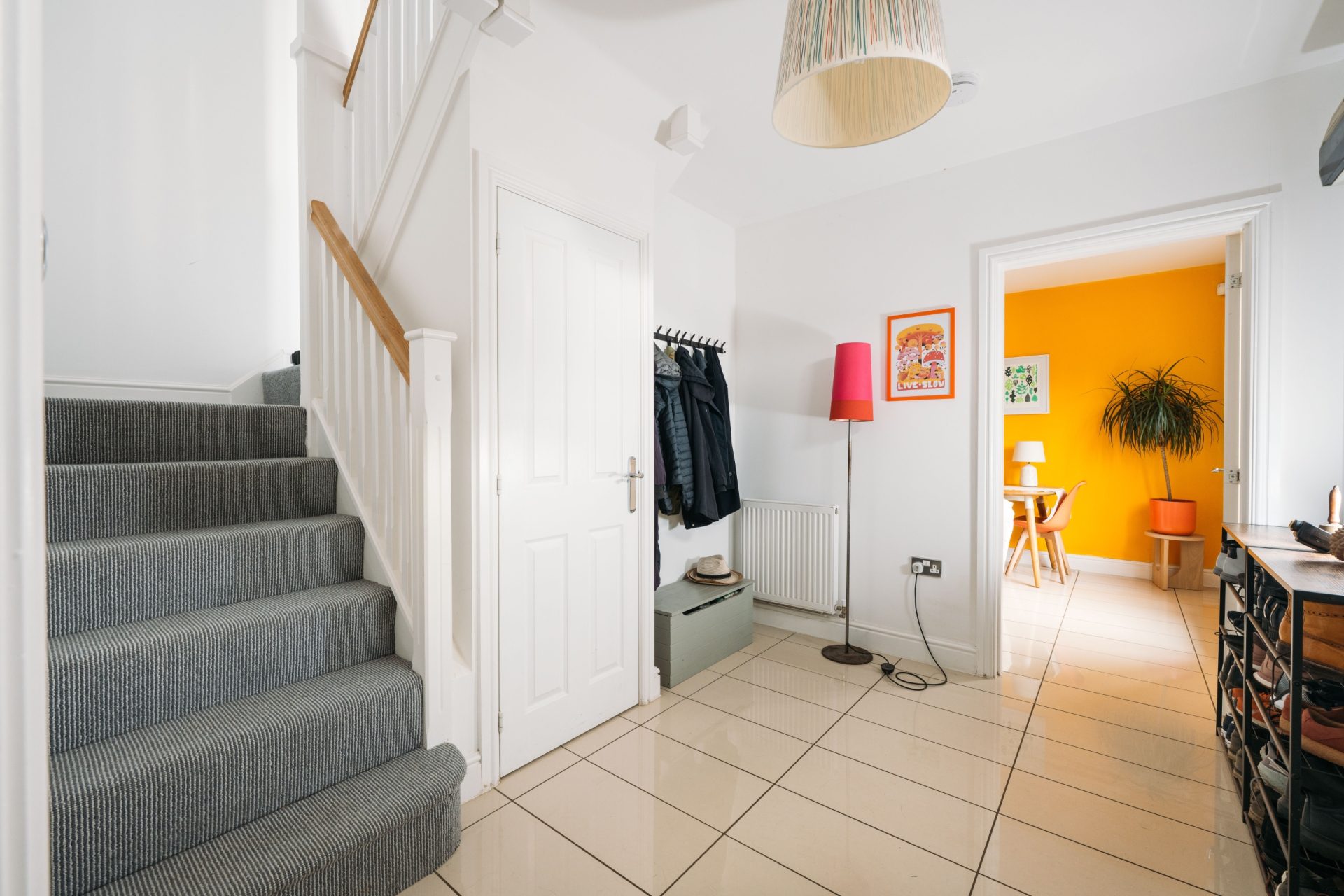The property is entered via a welcoming entrance hall, with stairs rising to the first floor and access to the principal living spaces.