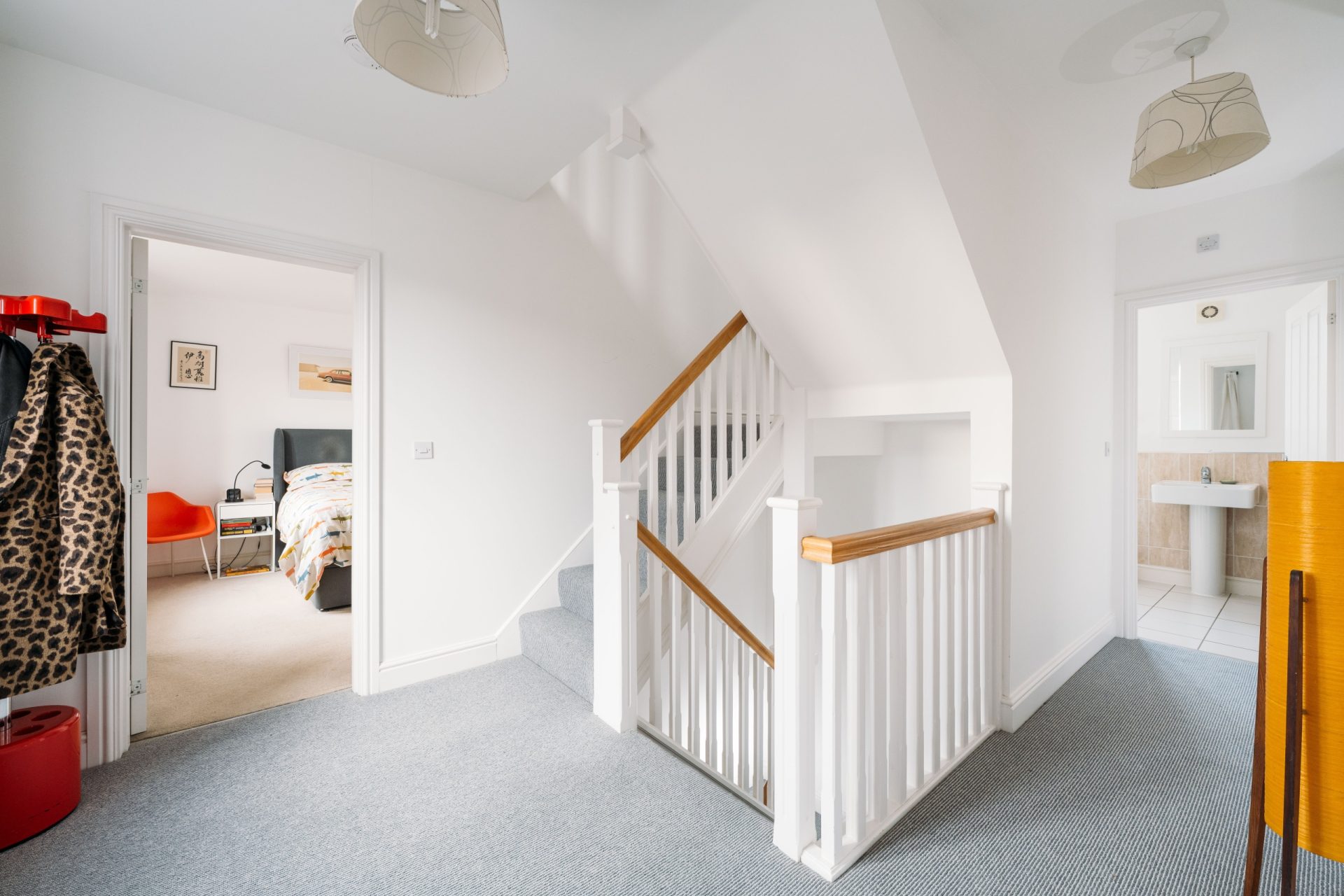The first floor provides three bedrooms, including the principal suite, along with the main family bathroom.