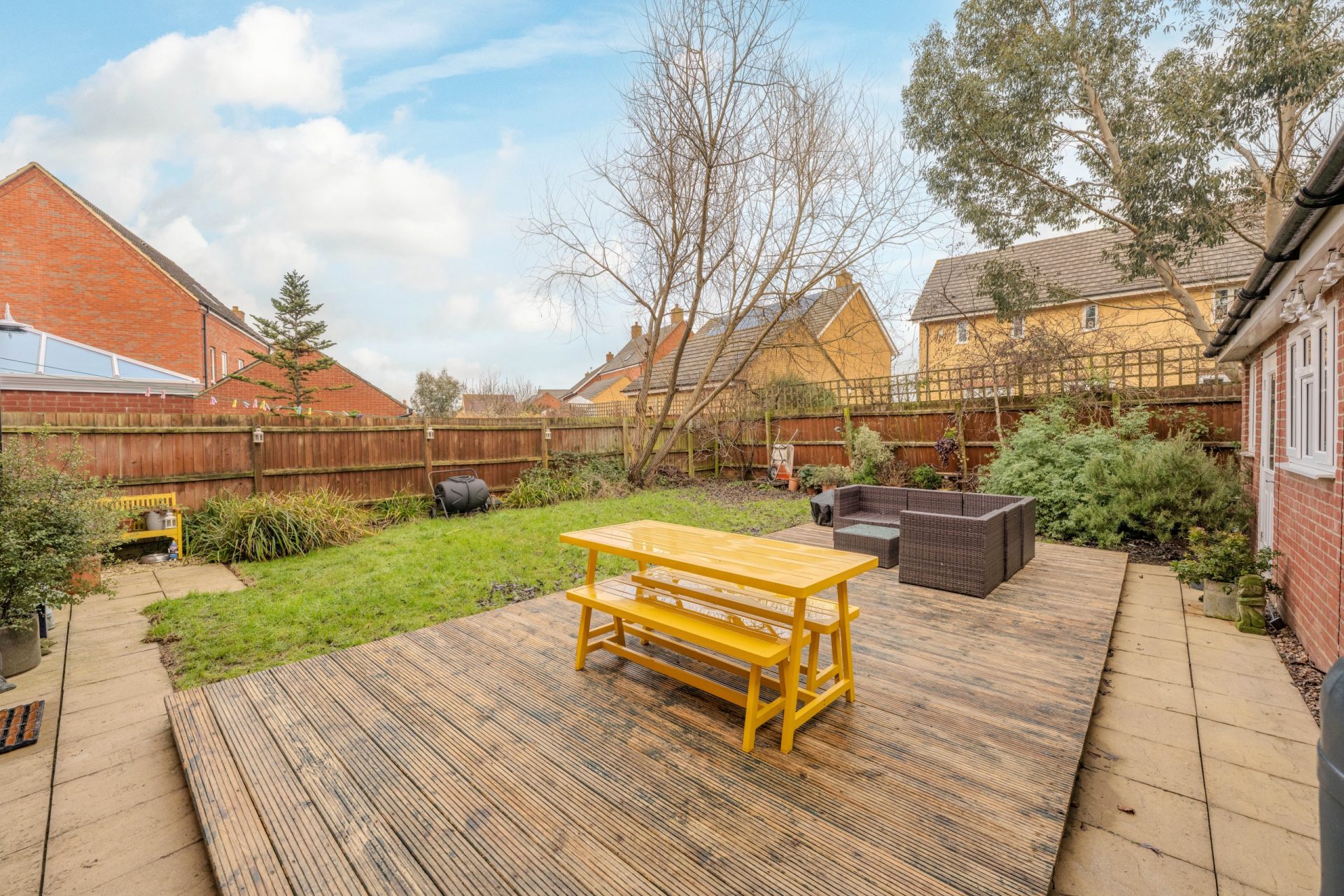- Enclosed rear garden with large decked seating area and driveway parking