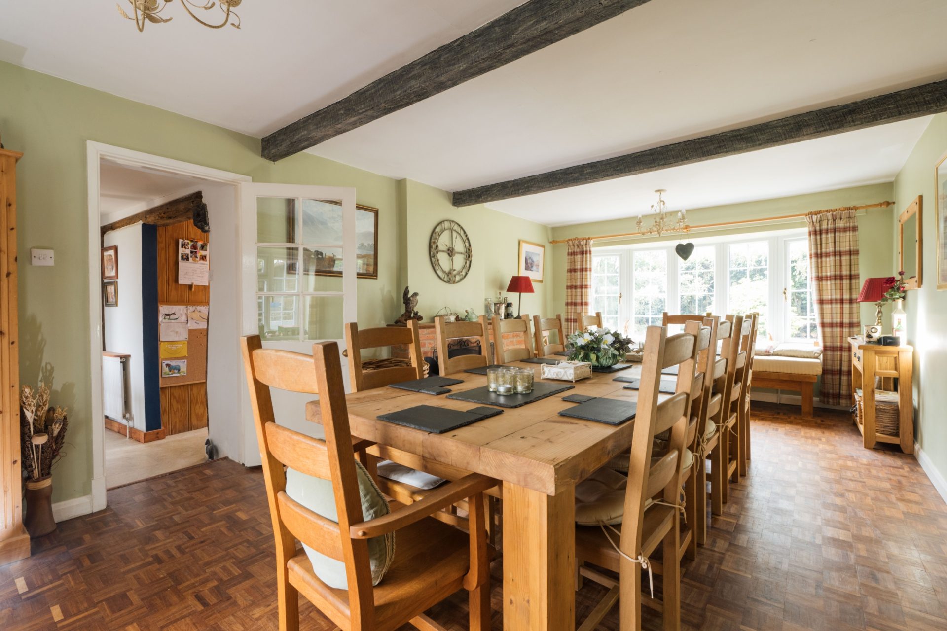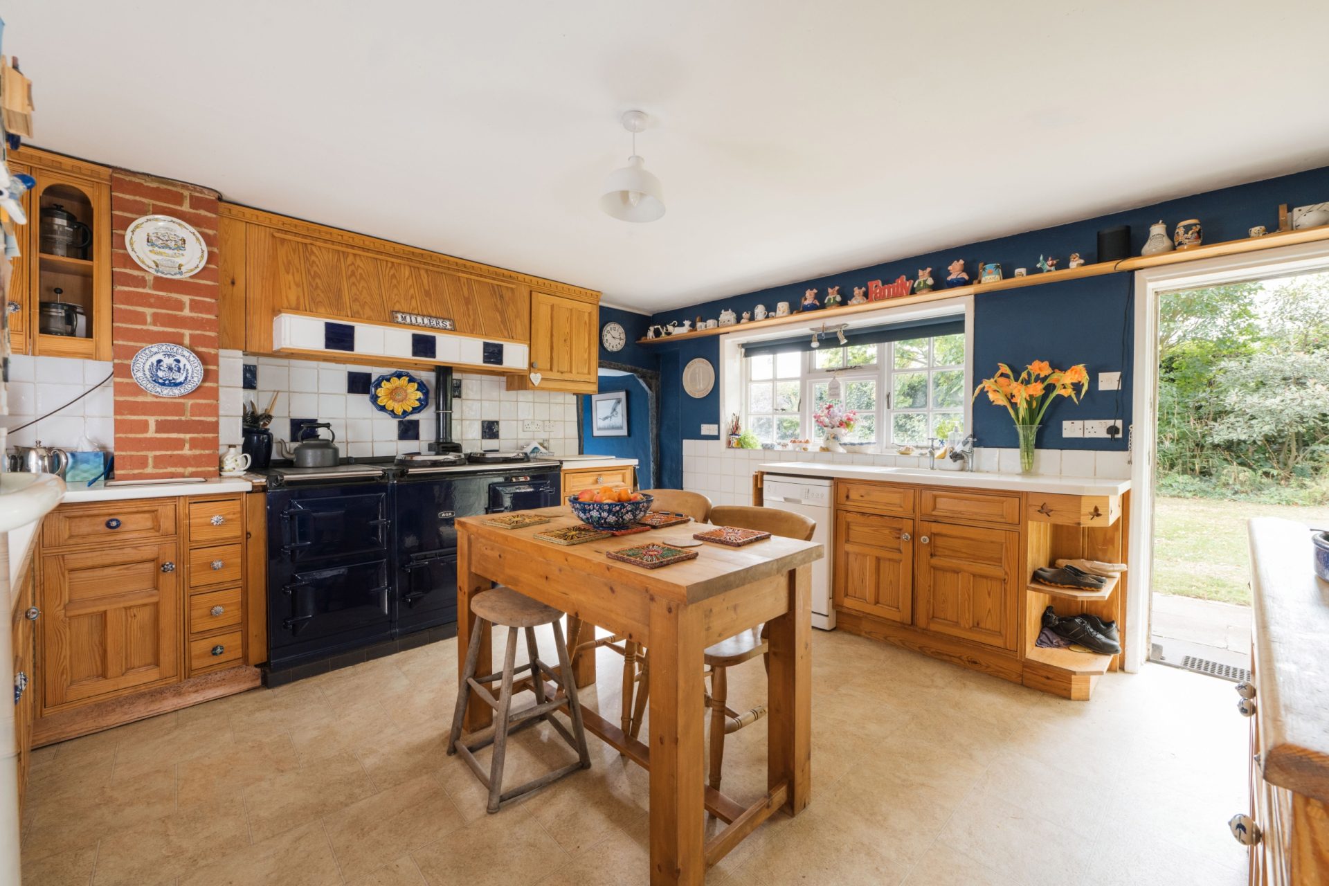 Upon entering the kitchen, you are greeted with a spacious and character-filled interior. The kitchen has a five-door oil-fired Aga and a great selection of floor and wall-mounted shaker-style kitchen units. A central hallway leads to the first of two reception rooms. The first reception room features a slate-tiled floor, an open fireplace, and provides access to the first floor. This dual-aspect room exudes charm and cosiness. From this reception room, you can access a further sitting room with an open fireplace and exposed beams, offering views of the front garden. Both reception rooms can be accessed from the hallways. Additionally, there is a downstairs WC, utility room, and pantry cupboard, with the utility room having a door leading to the rear garden.